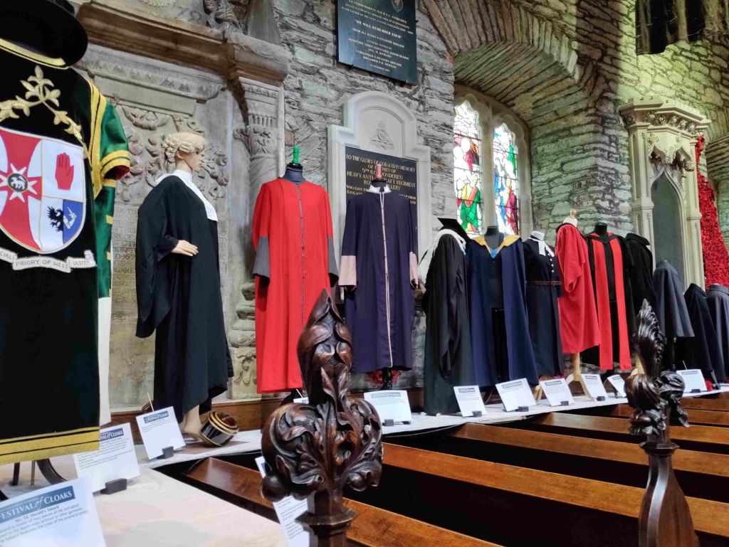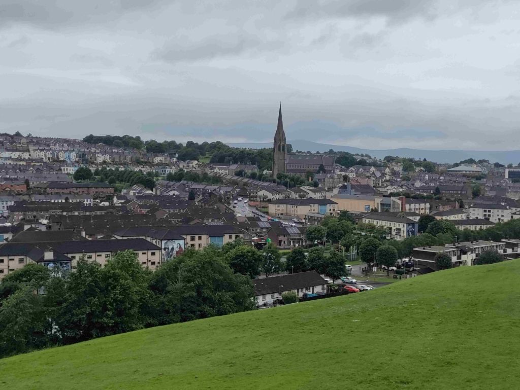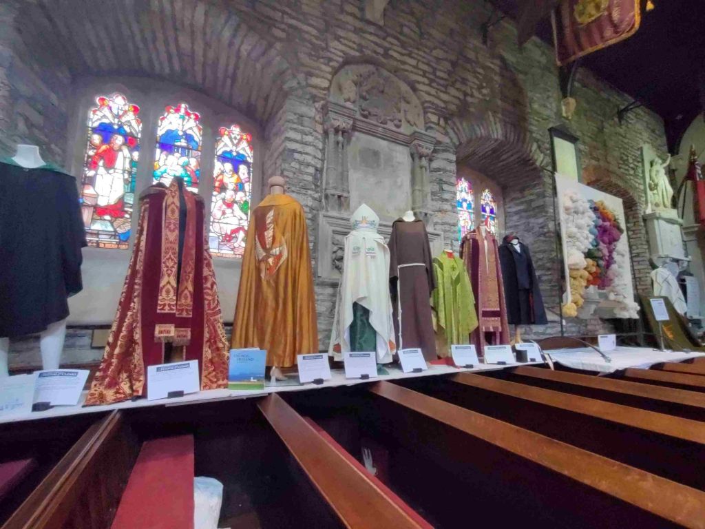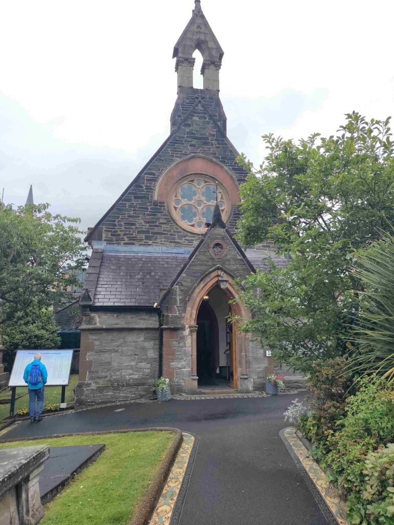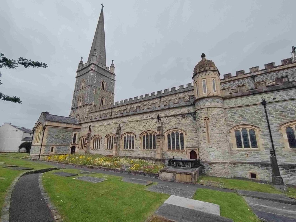 We enjoy the walk up and views, stopping first at St Columb’s Cathedral. It had an interesting cloak exhibition, including a cape worn by Eurovision winner Dana, that we enjoyed and we also got a chance to listen to a lovely rendition of the ‘Lord is my shepherd’.