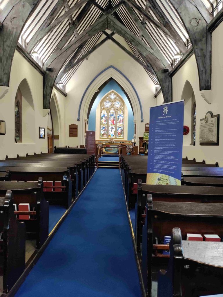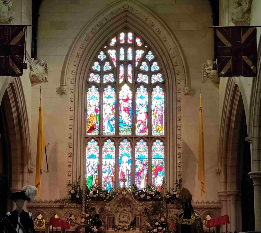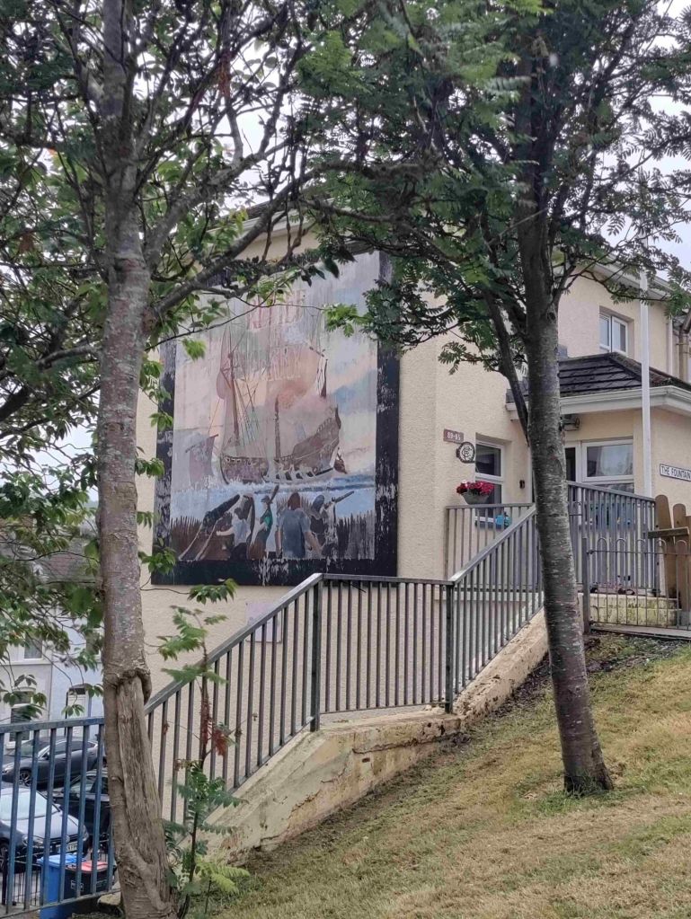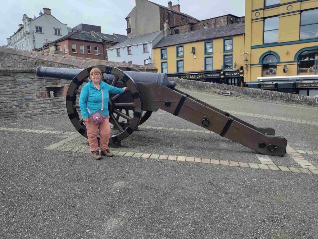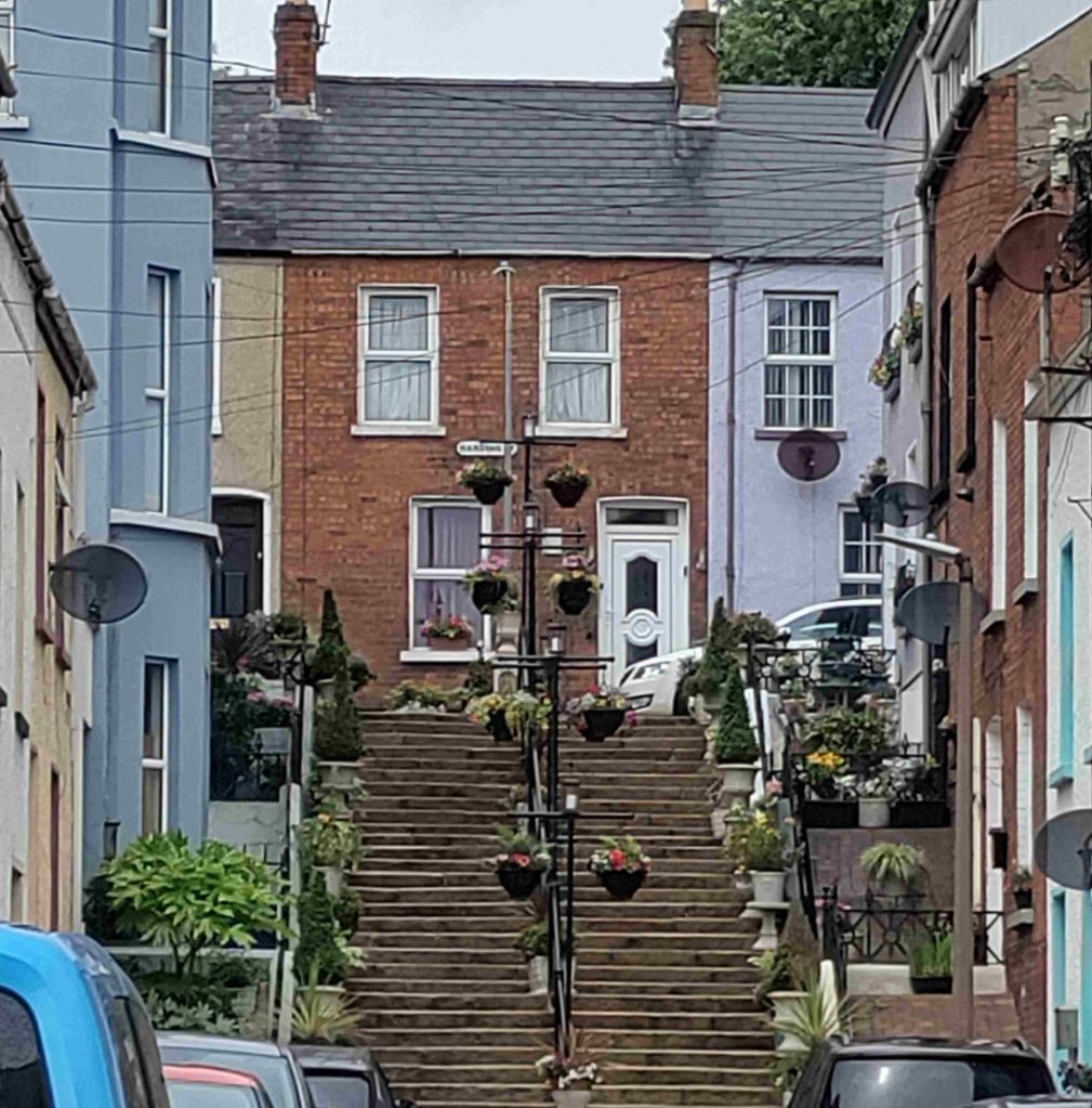 We enjoy the walk up and views, stopping first at St Columb’s Cathedral. It had an interesting cloak exhibition, including a cape worn by Eurovision winner Dana, that we enjoyed and we also got a chance to listen to a lovely rendition of the ‘Lord is my shepherd’.
