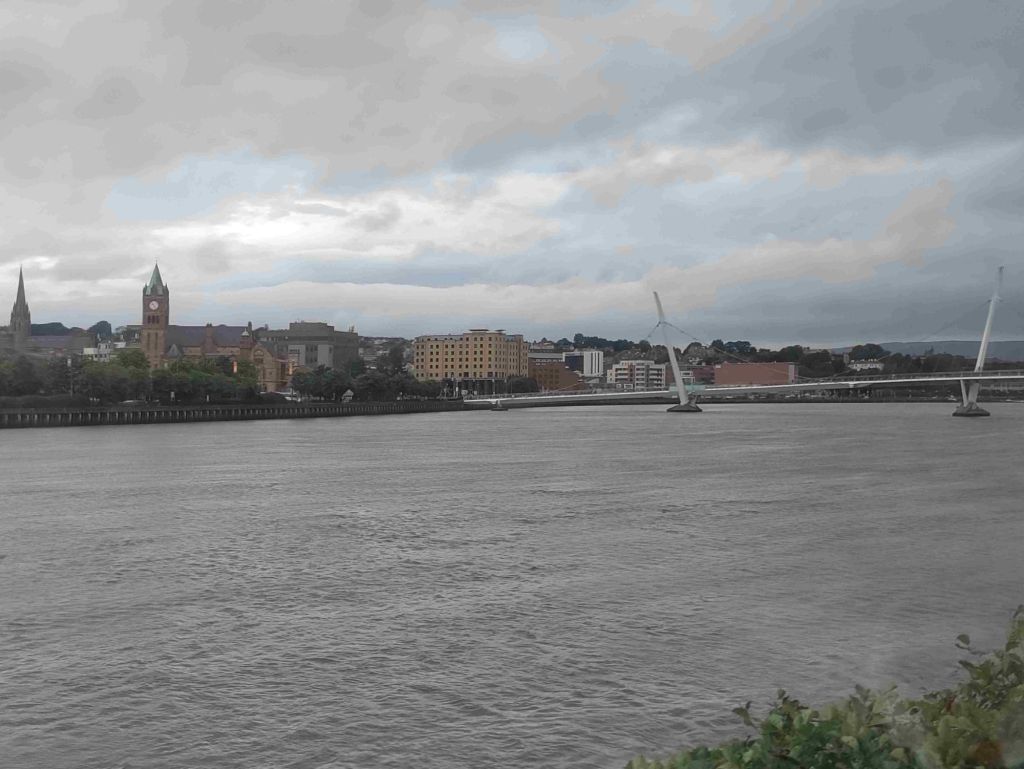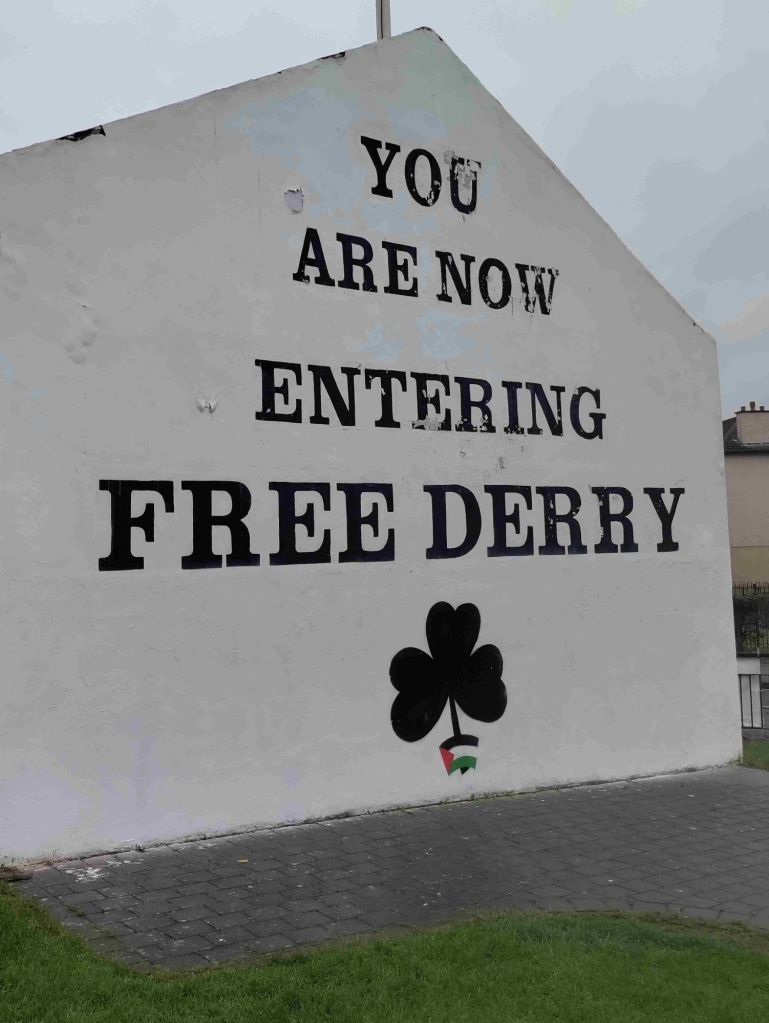 After a quick breakfast we take the 9:50 am train into Derry. It’s a lovely journey along the coast. Towards the end the train stops to let a delayed plane land. Apparently a regular occurrence according to the train guard.