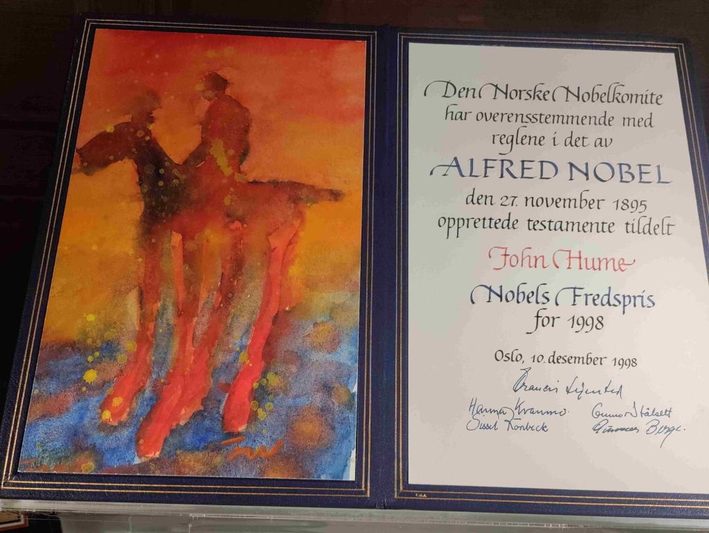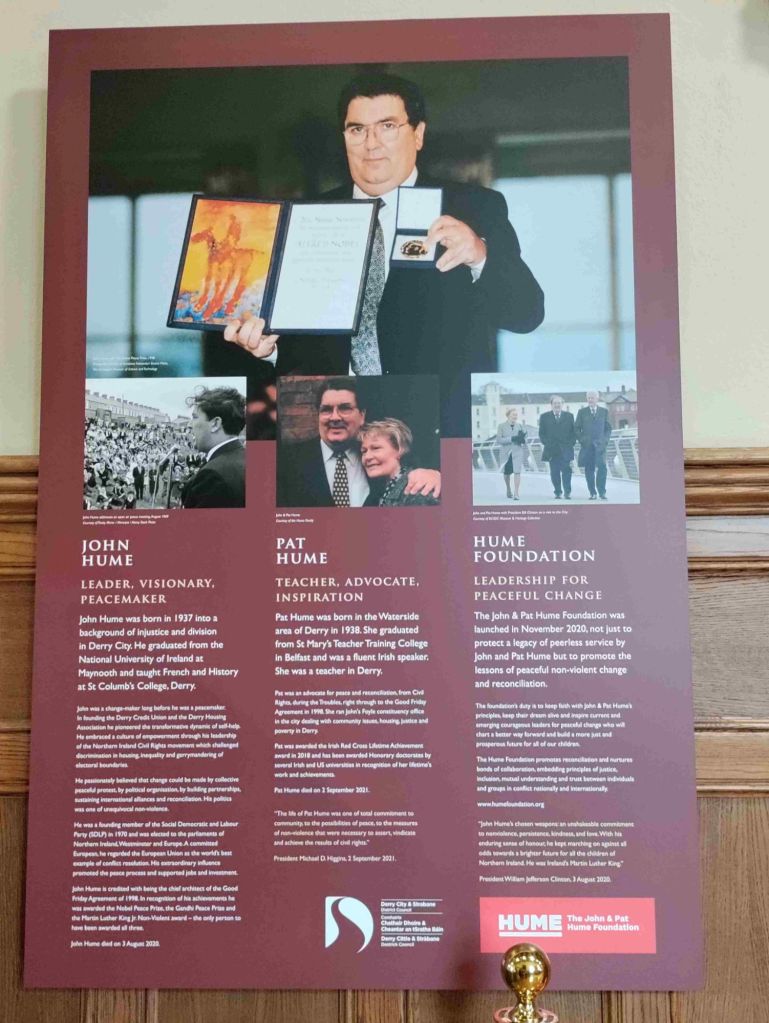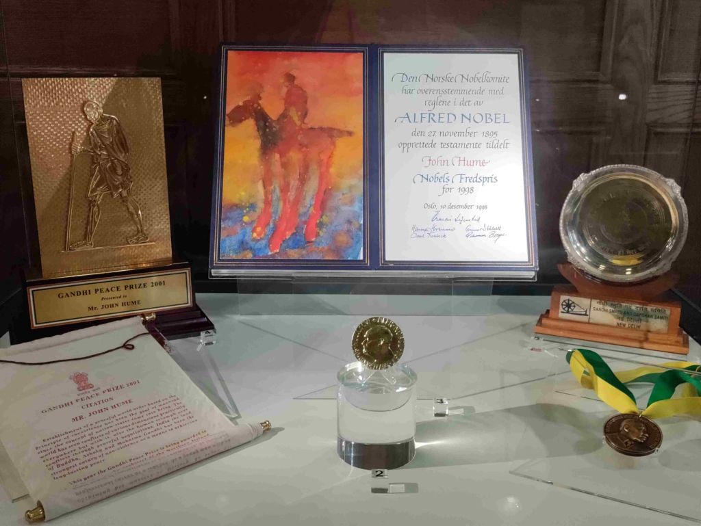 After an informative visit to tourist information and our photo taken with the Derry Girls we walk back to the Guildhall for a look around. It’s incredibly ornate, victorian gothic with lots of wood and stained glass. There’s an exhibition of John Hume’s peacemaker awards including his Nobel peace prize.