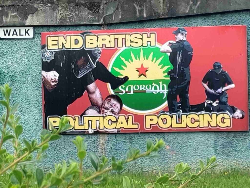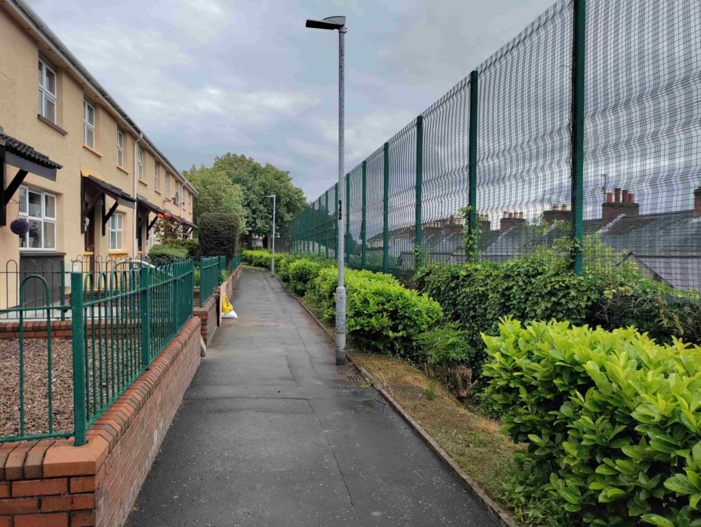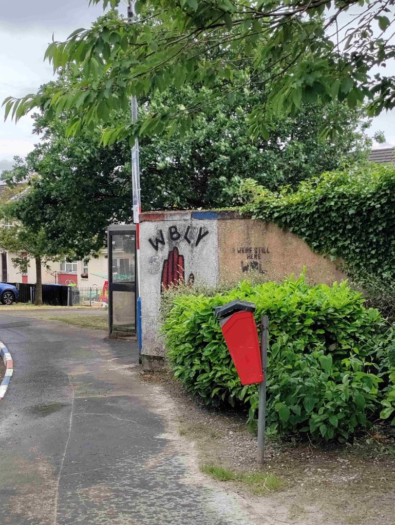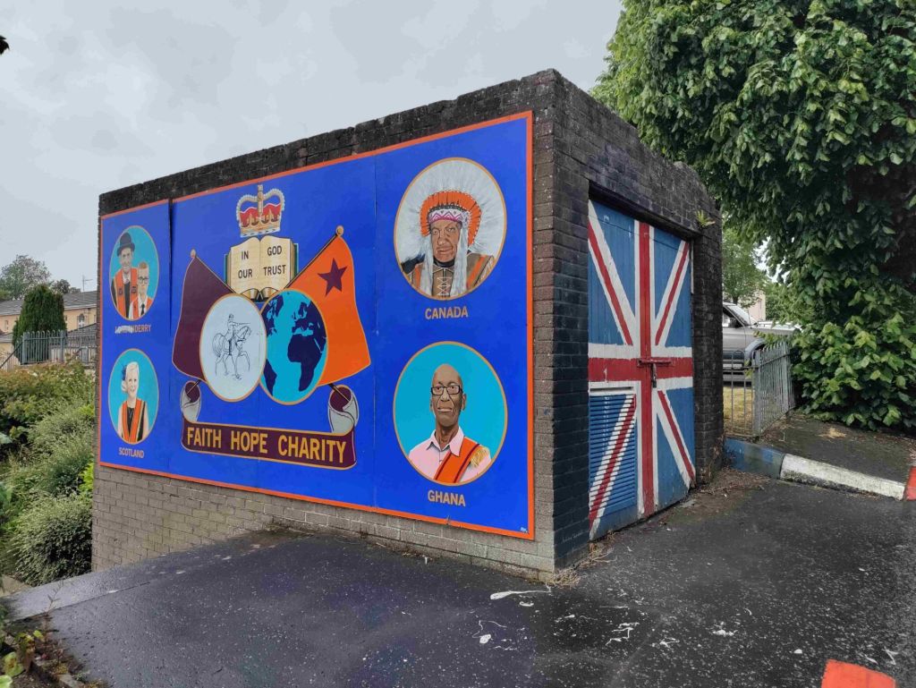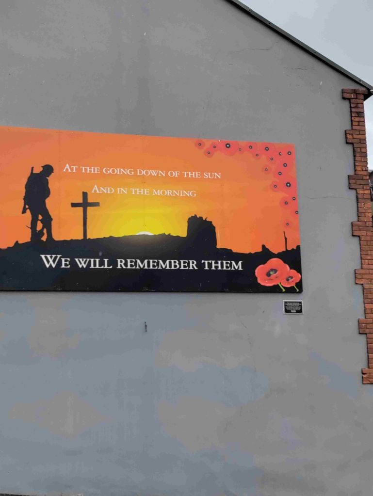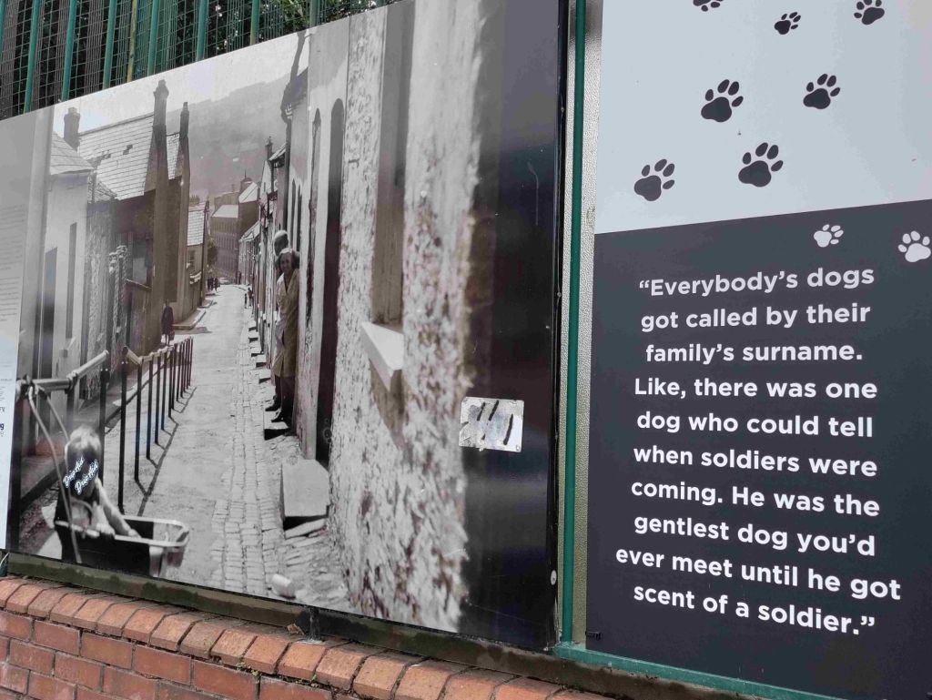 Next we have to retrace our steps to New Gate in order to visit a loyalist area called The Fountains. It’s raining on and off now so our trusty blue macs are on and then off. There’s murals and fences and the Heritage tower museum that used to be part of a much larger prison.
