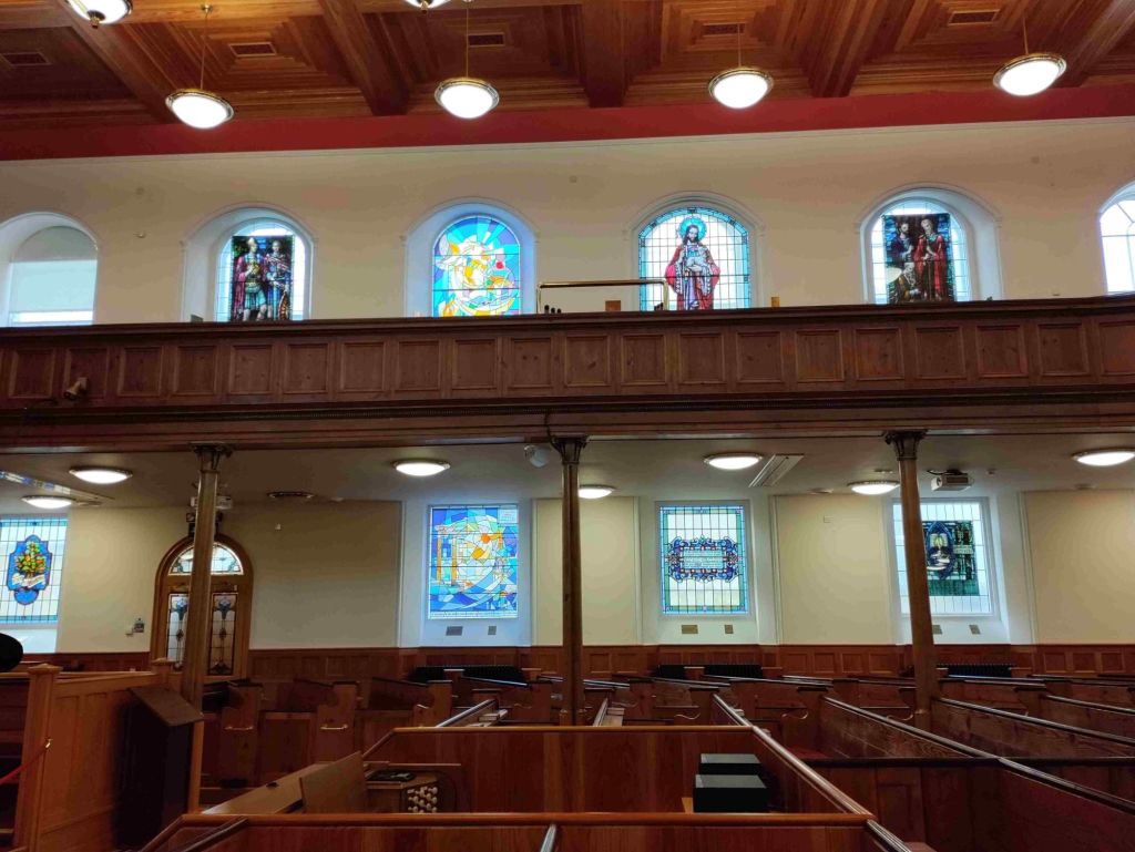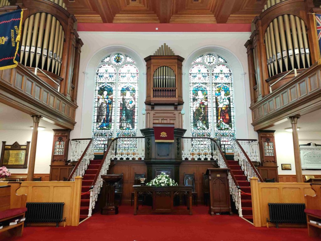 Back on the walls we can now see the murals of the bogside in the distance. We visit the Free Presbyterian church which is more ornate than expected and still has the refurbished 18th century original pews.