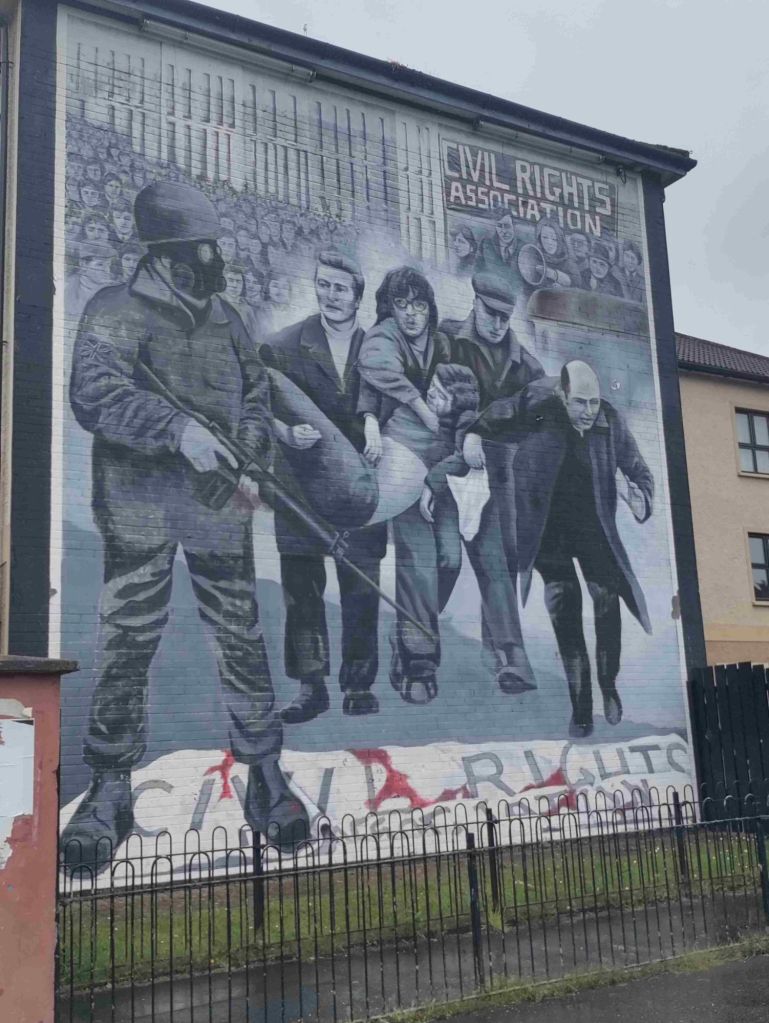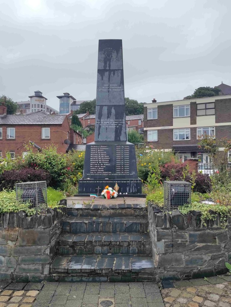 We leave the walls at Butcher Gate and walk to the Bogside where we visit The Bloody Sunday memorial, the H block memorial, the Free Derry Corner and the murals.