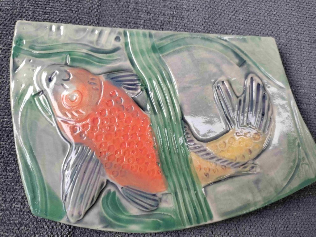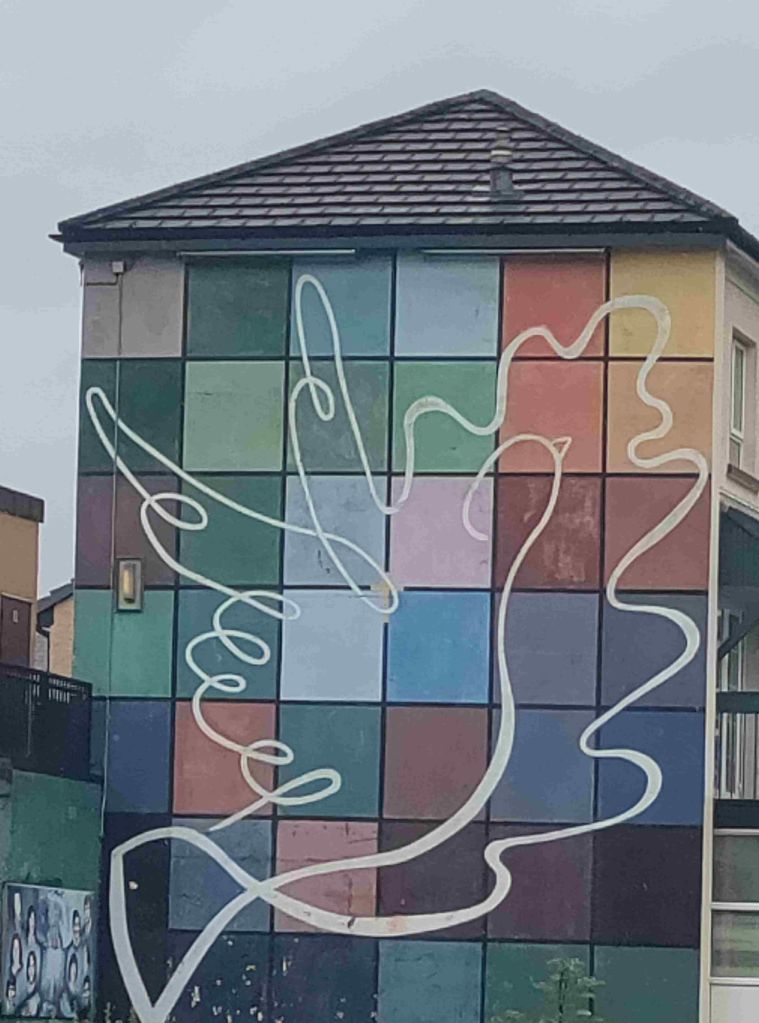 We walk by the peace wall to get back up on the city walls again and our next stop is St Augustine’s church and a visit to a ceramics sale being held in the grounds by a retiring potter Tom Agnew, where we buy a lovely tile for our garden wall. It’s of a salmon and bought to remember our trip to Carrick-a-rede.