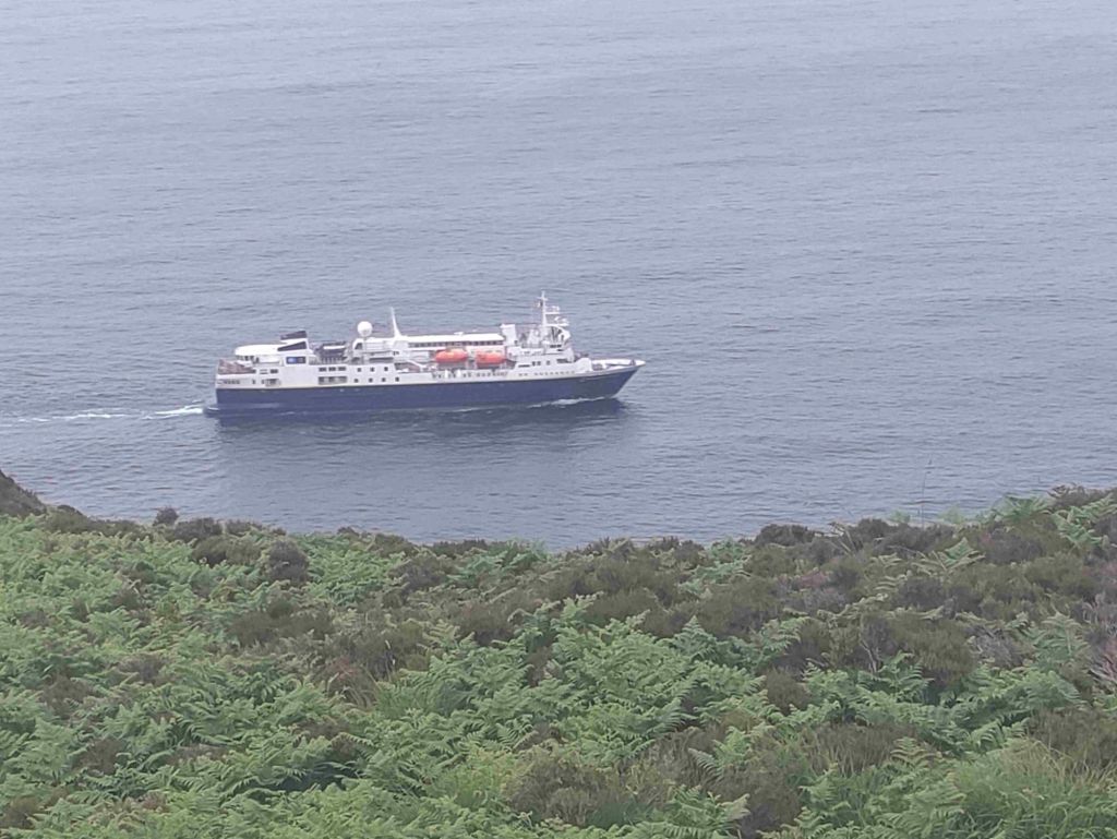 In the bay below we see a ship. T has his binoculars and discovers it’s the National Geographic Explorer. Hopefully seeing more wildlife than us.