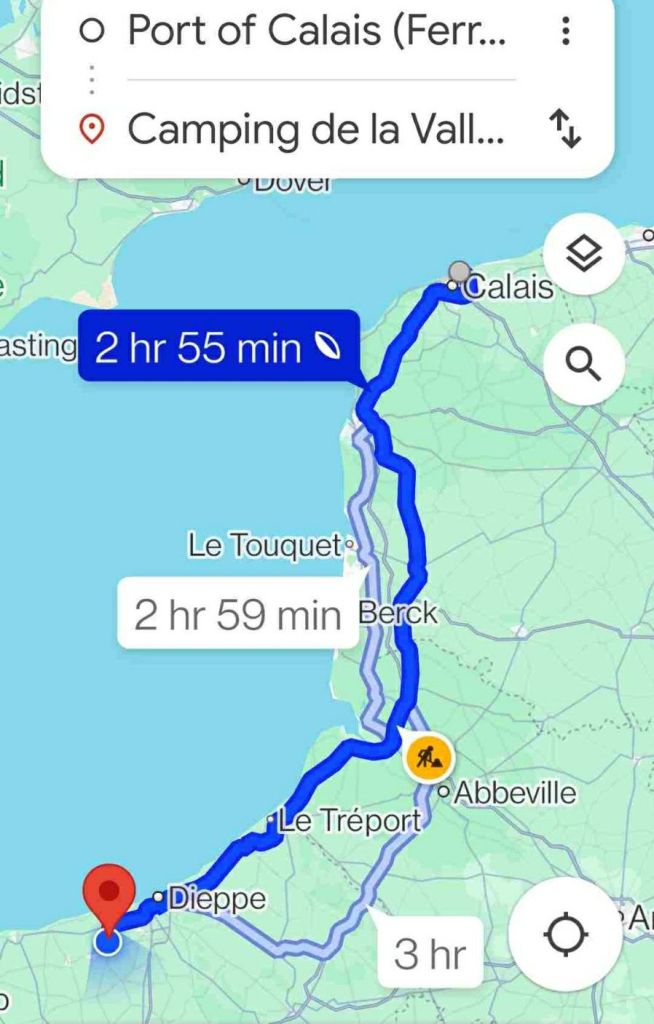 We land at 1:30pm and then have a three hour drive ahead of us. We are heading for a campsite called Camping de la Vallée near Gueures which is a commune in the Seine-Maritime department in the Normandy region of northern France, chosen for it’s lakeside pitches and great reviews.