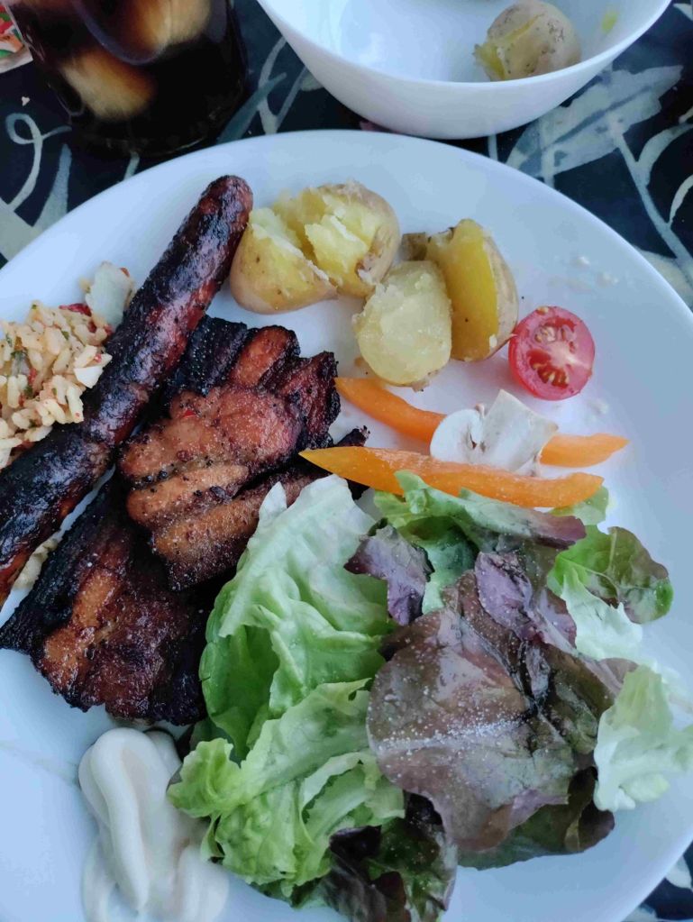 It’s started spitting but we keep dry sitting outside under our awning. The rain blows over and we enjoy our first BBQ of the holiday.