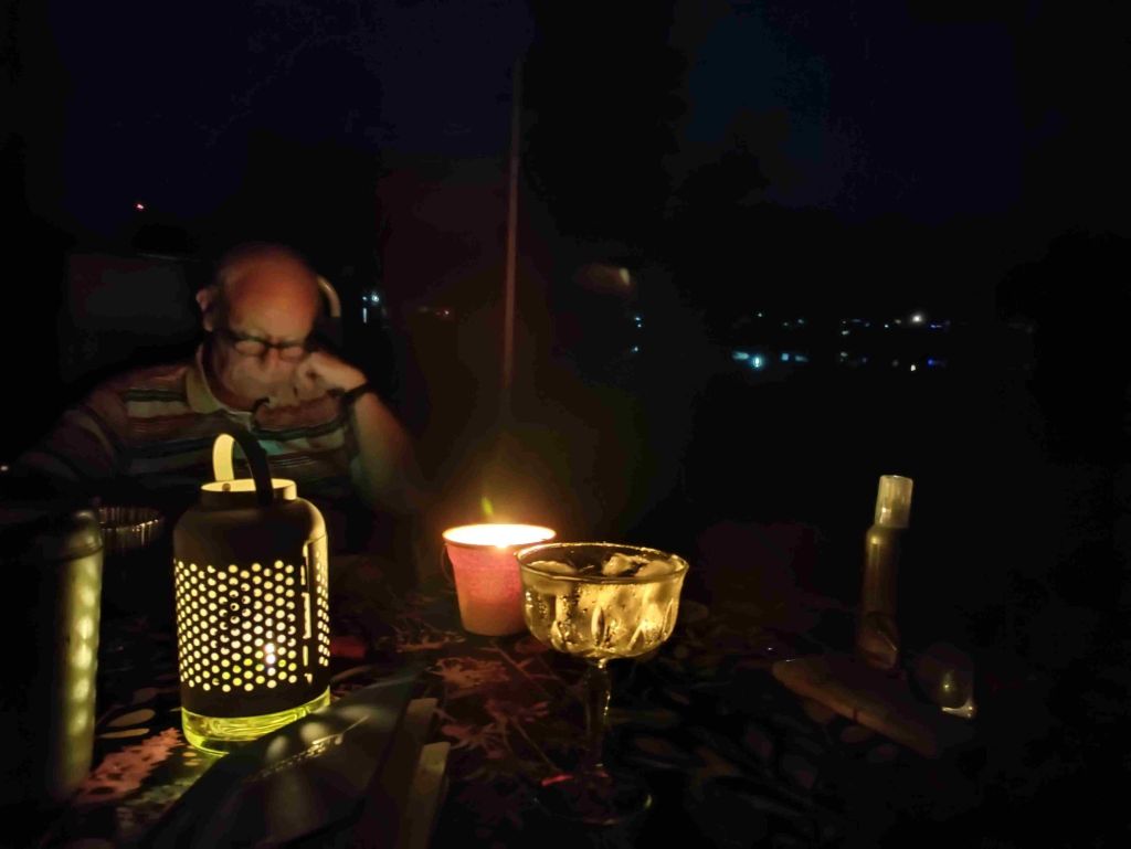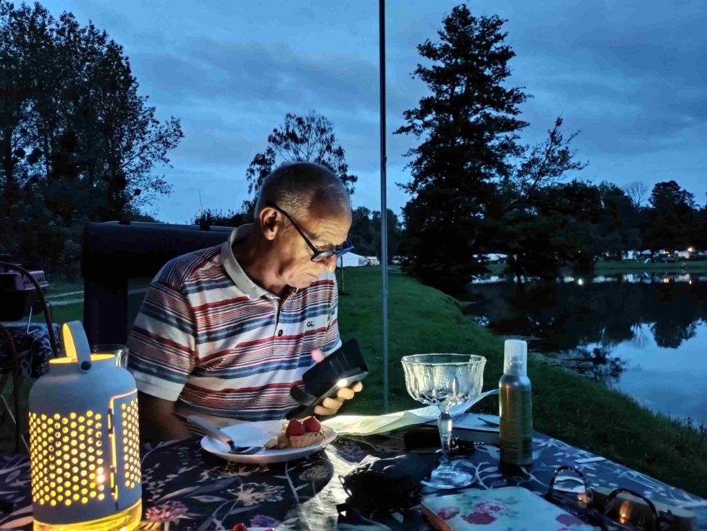 A few drinks and quiz games sitting watching the lake change as the sun goes down our table lit by citronella candles in case of mossies. I dig out a long sleeved top and a blanket as the sky darkens and end the day reading my kindle thoroughly enjoying the ambience.