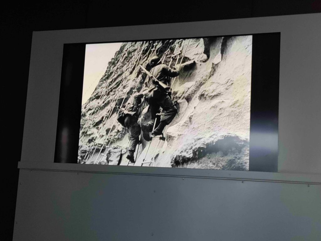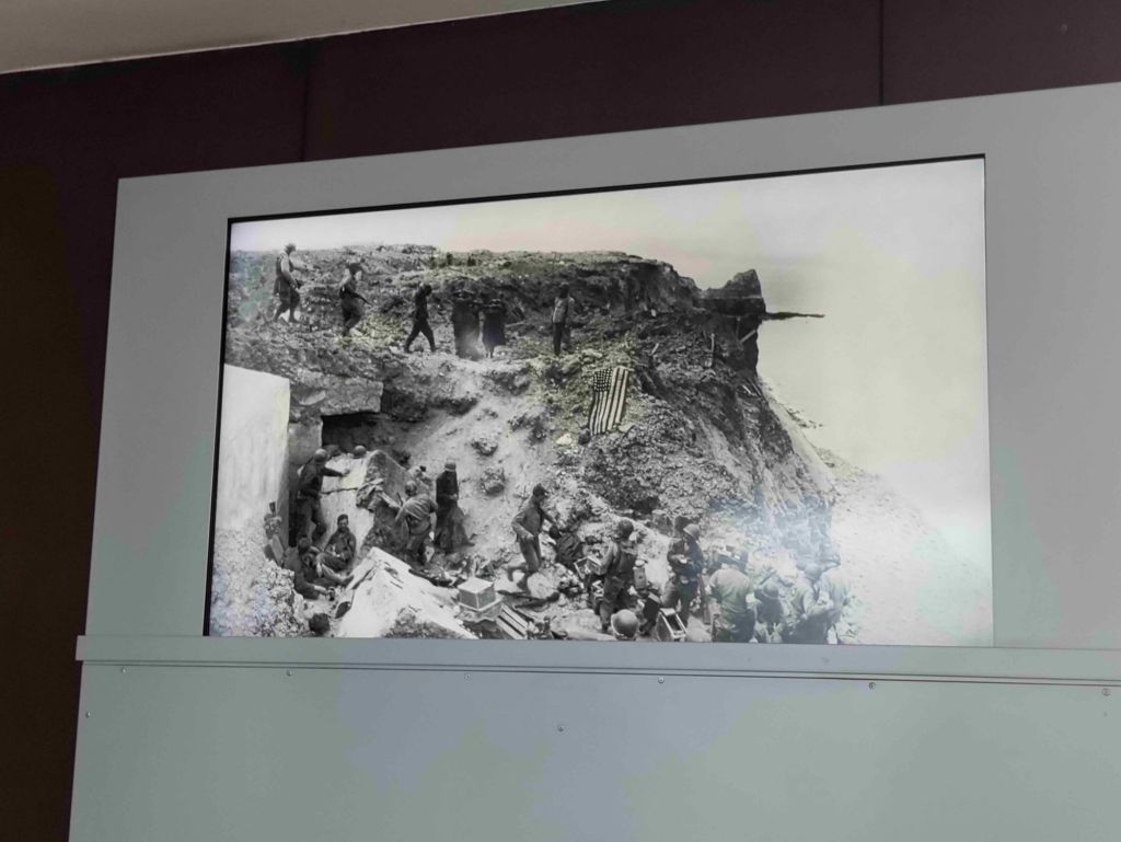 Ahead of the beach landings on the 6th June 1944 a USA army ranger battalion attacked and captured Pointe du Hoc, taking out the German artillery, after scaling the cliffs that stand between Omaha and Utah beaches.