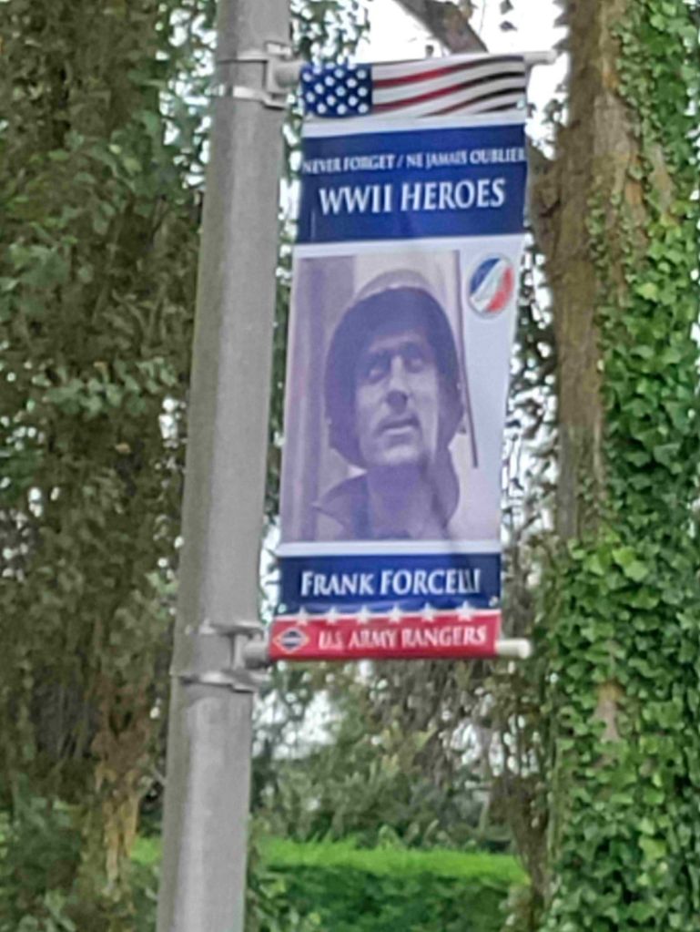 This is a D-Day memorial site. The roads around the site have pictures on lampposts honouring the Army Rangers that died here.