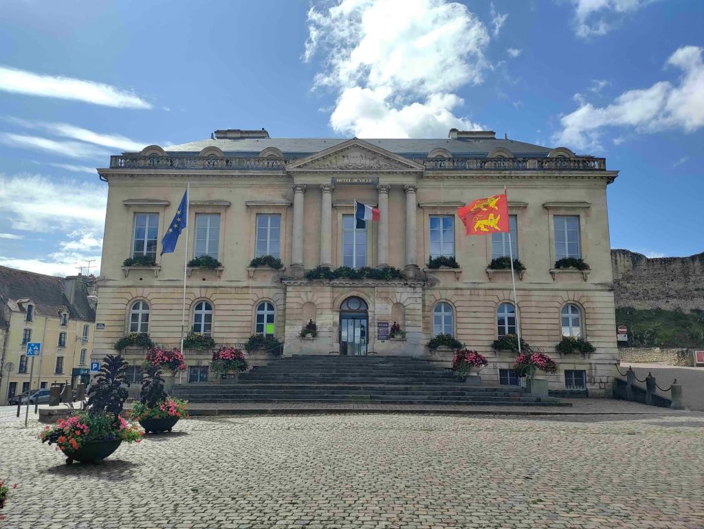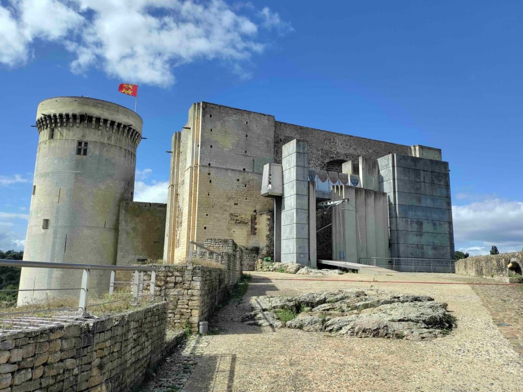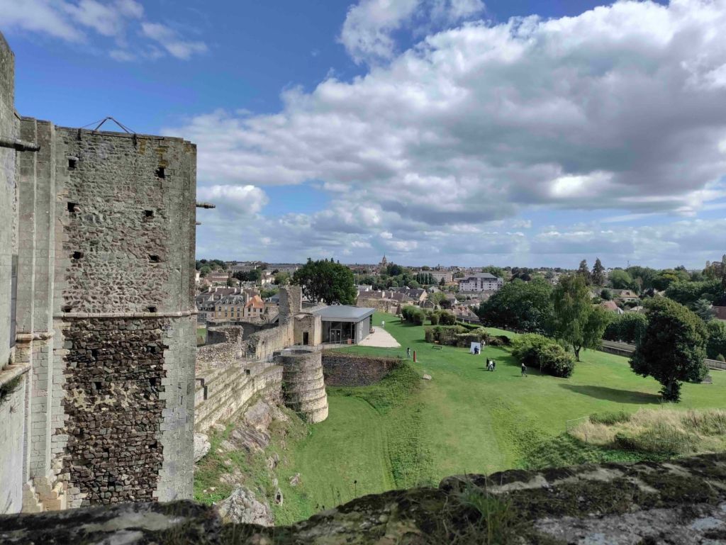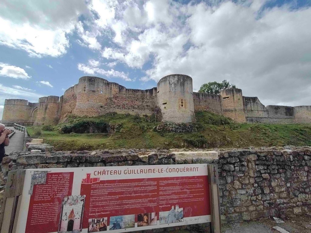 The skies are bluer today as we walk into Falaise. Our first stop is the castle but we first have to pass an enormous statue of William The Conqueror standing in front of the town hall.
