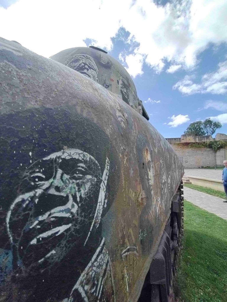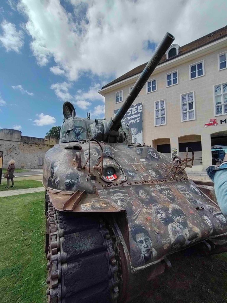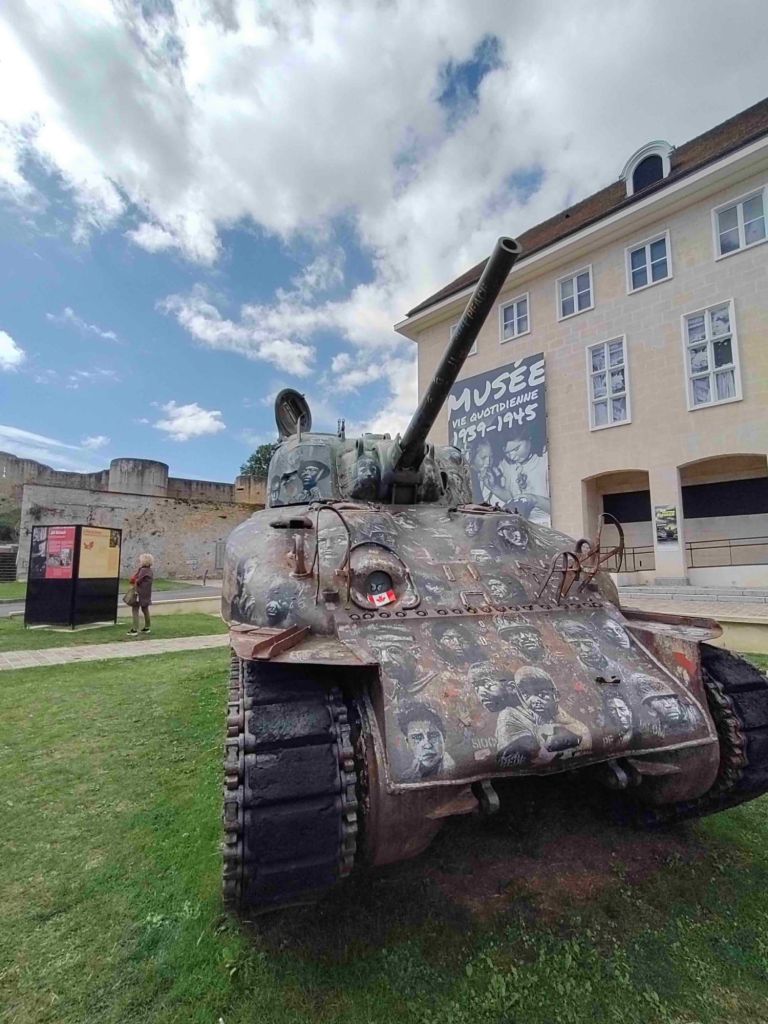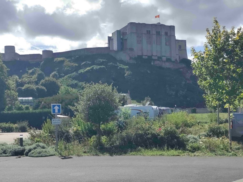 The skies are bluer today as we walk into Falaise. Our first stop is the castle but we first have to pass an enormous statue of William The Conqueror standing in front of the town hall.