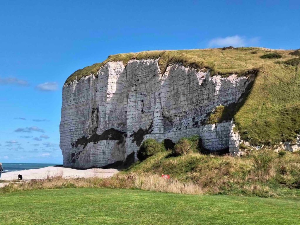 The Alabaster Coast, 130 kilometers of seafront and chalk cliffs, runs along most of the coast of the Seine-Maritime region of Normandy. We saw these cliffs in Étretat and now at Veulettes-sur-Mer we are seeing them again.