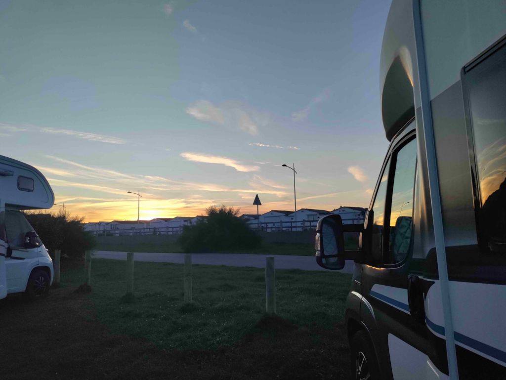 We have moved nearly 40 miles along the coast for an overnight spot near the beach. It’s €9 to park with grey and black waste facilities. You can also buy 100L of water for €4. There are toilets too but they need a good clean so we won’t use them. It’s a busy spot gradually filling up over the afternoon and evening.