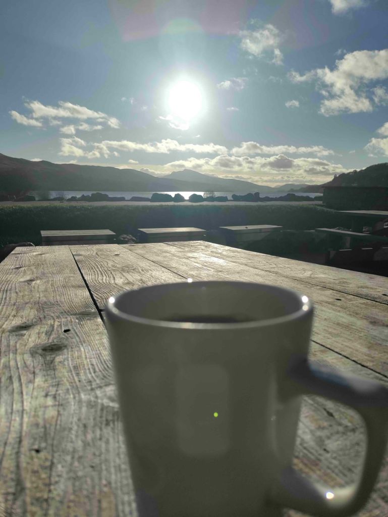 Back on the lake we walk to the leisure centre and it’s cafe. A cuppa outside in the sunshine is just what we needed.
