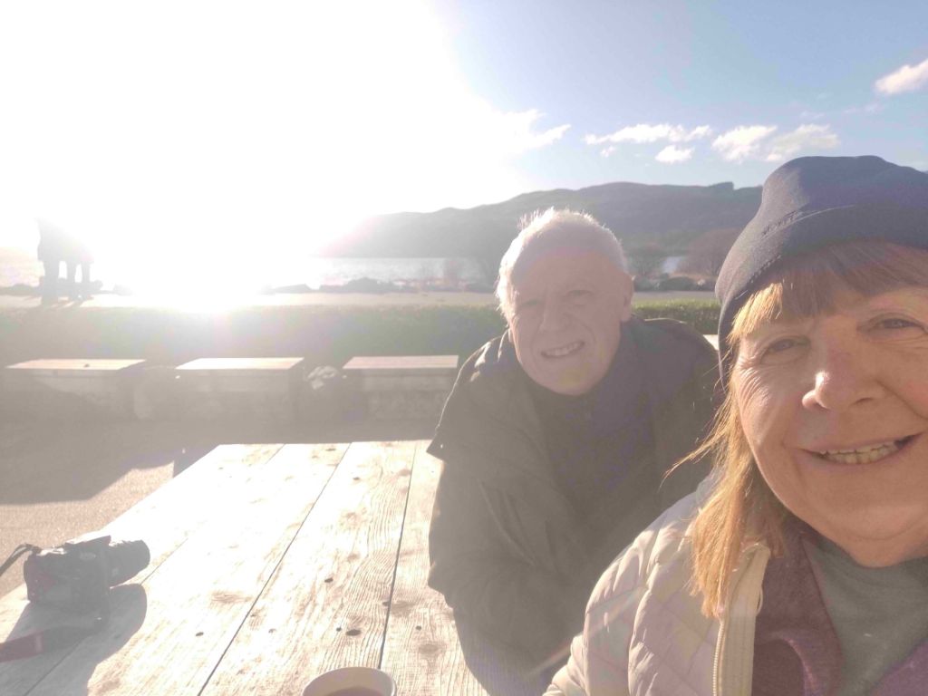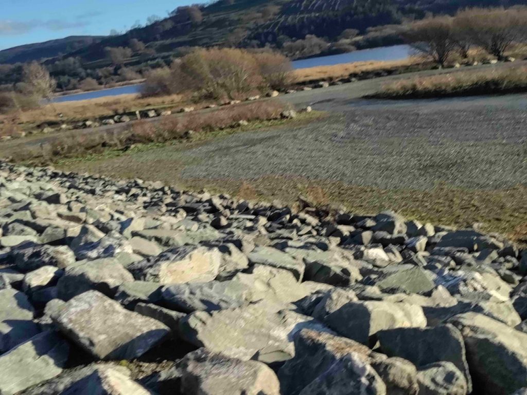 Once outside everything looks very different from yesterday in the winter sunshine. The level of water in the lake looks like it’s reduced too. We decide to do a circular walk around and through Bala.