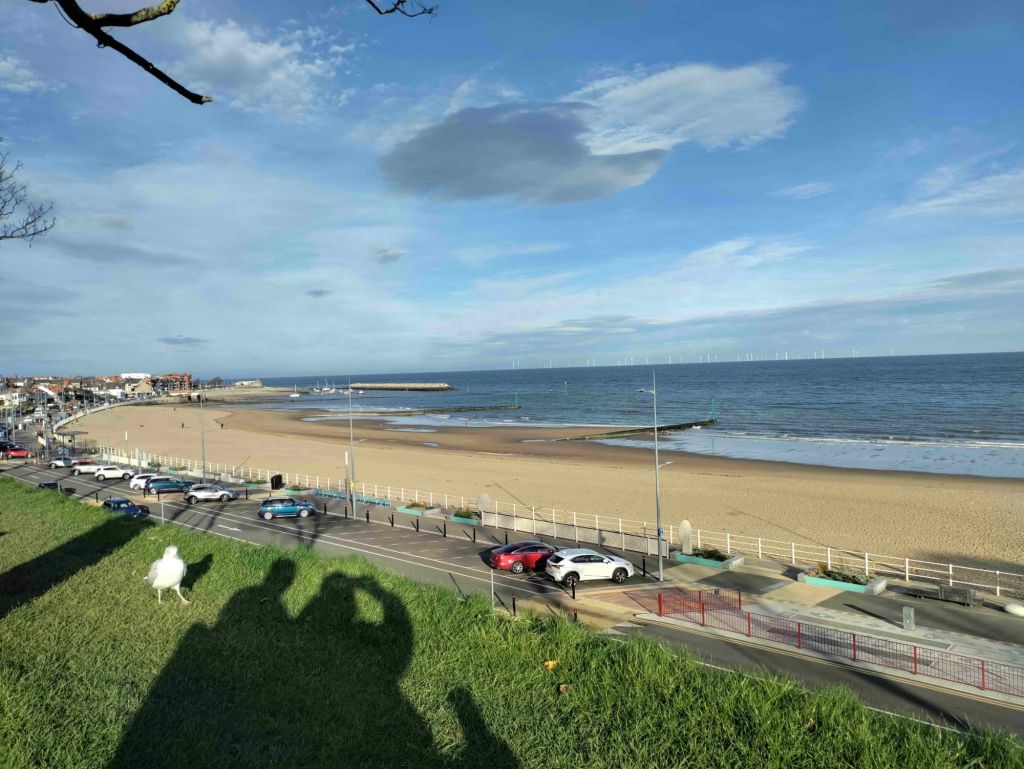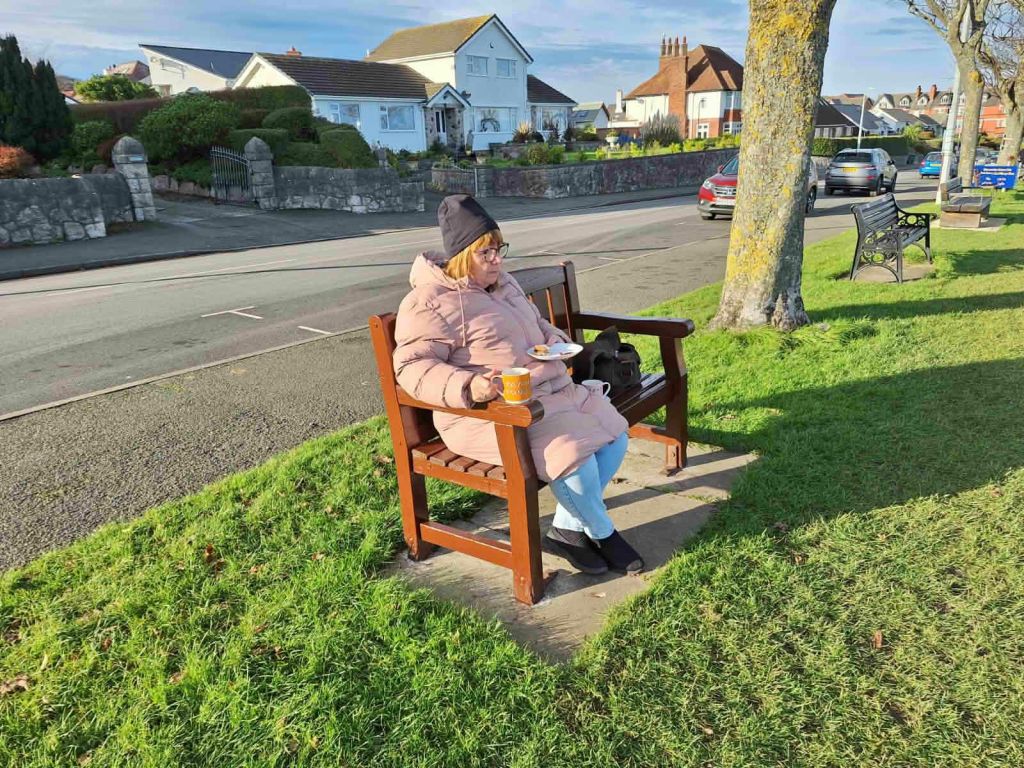 An impromptu lunch stop on the promenade at Rhos-on-Sea more than made up for it. We have a bench and a wonderful view and the sun is shining. A lovely spot to enjoy a cuppa and a butty.