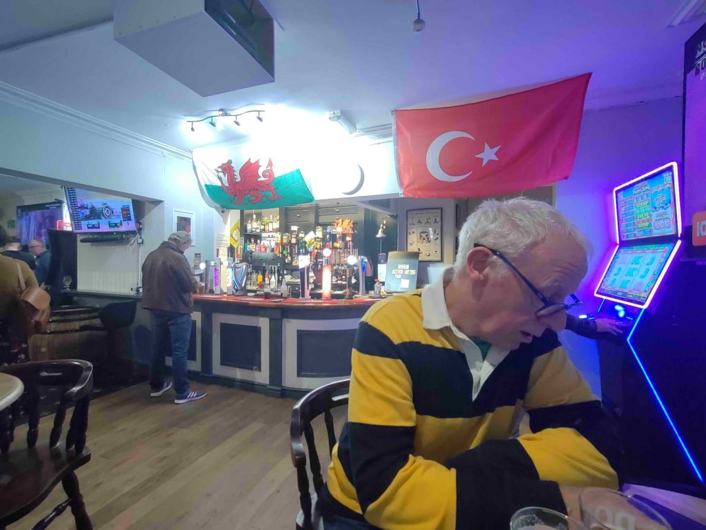 Around 5pm we wander out planning on a swift half followed by evensong in the cathedral. Another fail as the place is hosting a Christmas fayre. Definitely glad we didn’t stop here in the carpark! We buy a couple of Welsh Christmas decorations and then pop in the Bryn Dinas pub over the road which is full of mostly men in work gear.