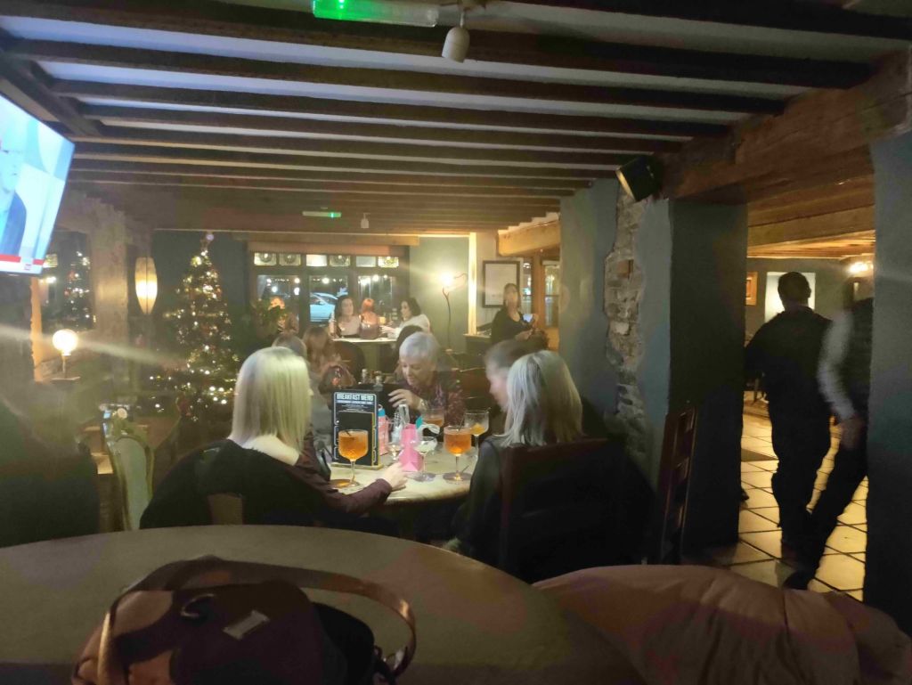 Next is the Bengal Village takeaway to pick up a menu before walking to The Plough for a final drink. This is a huge pub restaurant heaving with mostly women all dressed up for Christmas do’s in sequins having a great time.