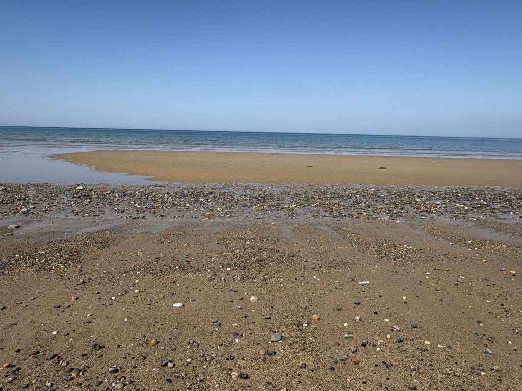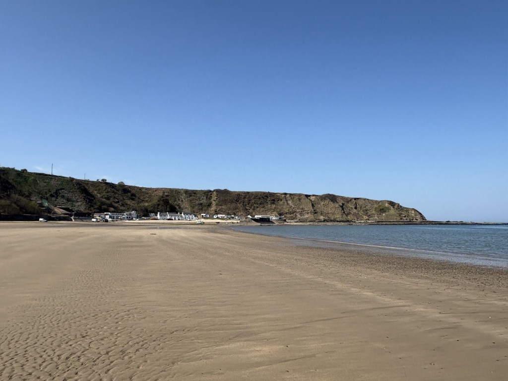 Our destination is towards the end of the beach just before the headland. It’s very quiet with a few dog walkers and a couple of families. The coastline itself looks rather crumbly and we can see the old fence line collapsing at the edge.