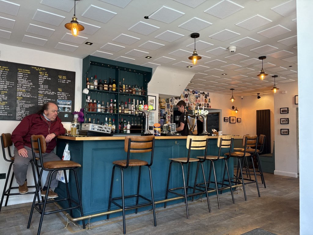 Another half mile to the campsite for a quick change into warmer gear before heading out to our local. As there’s no footpath we again have to walk up a couple of roads but we get there in 15mins.
