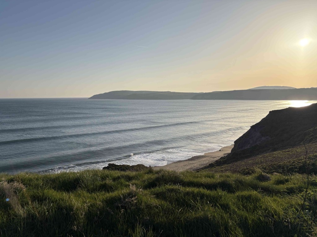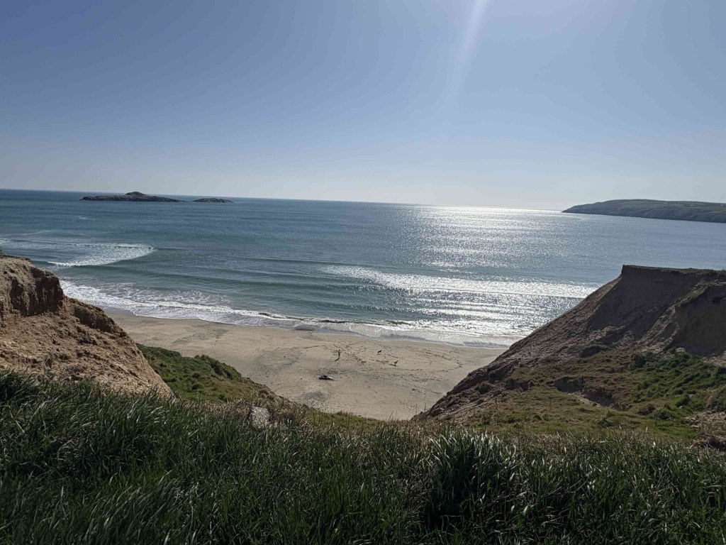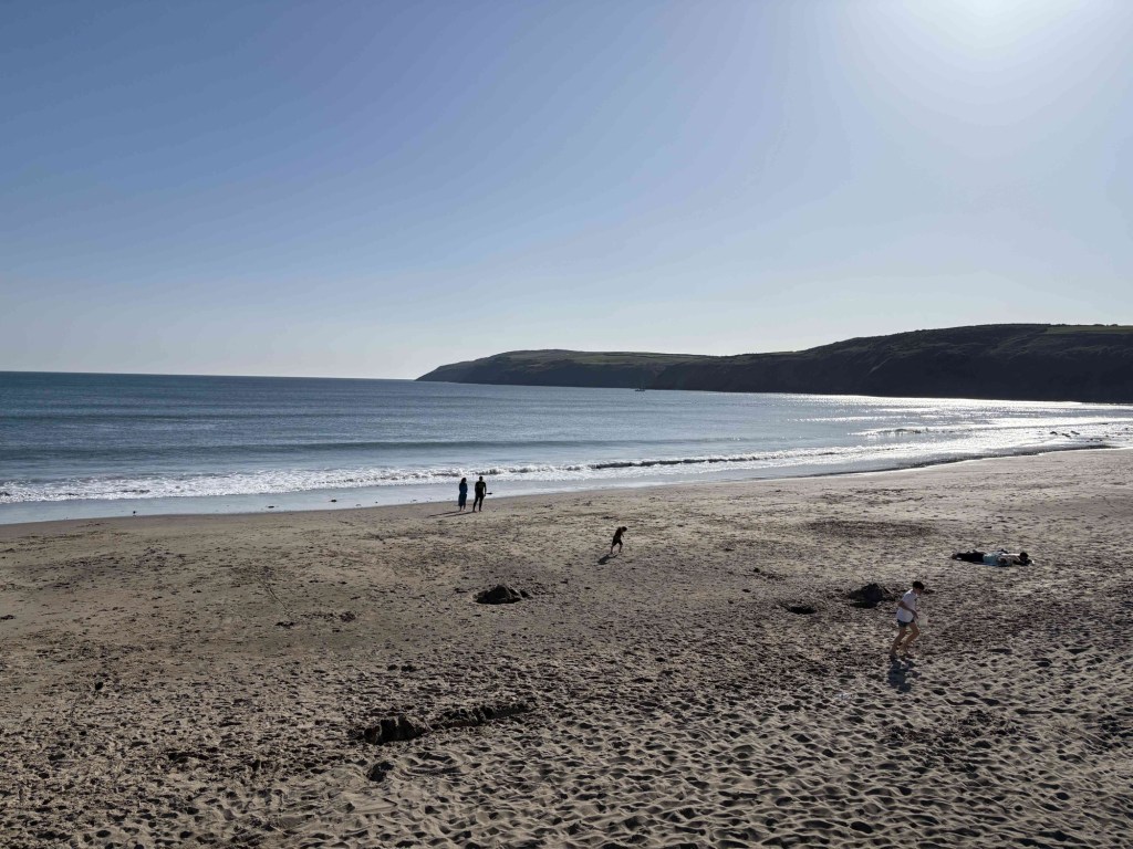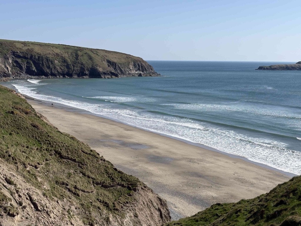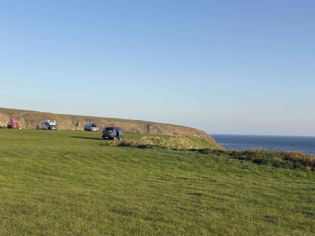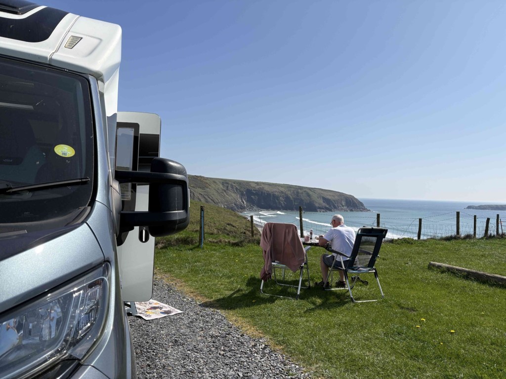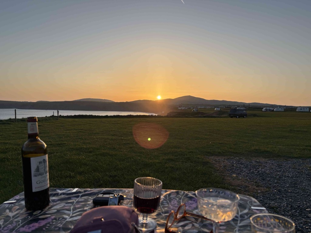 Morfa Mawr campsite is also up a steep hill leading out of Aberdaron. It’s a tight squeeze through the village. The site is fabulous, on top of the world, overlooking Aberdaron beach and the village.