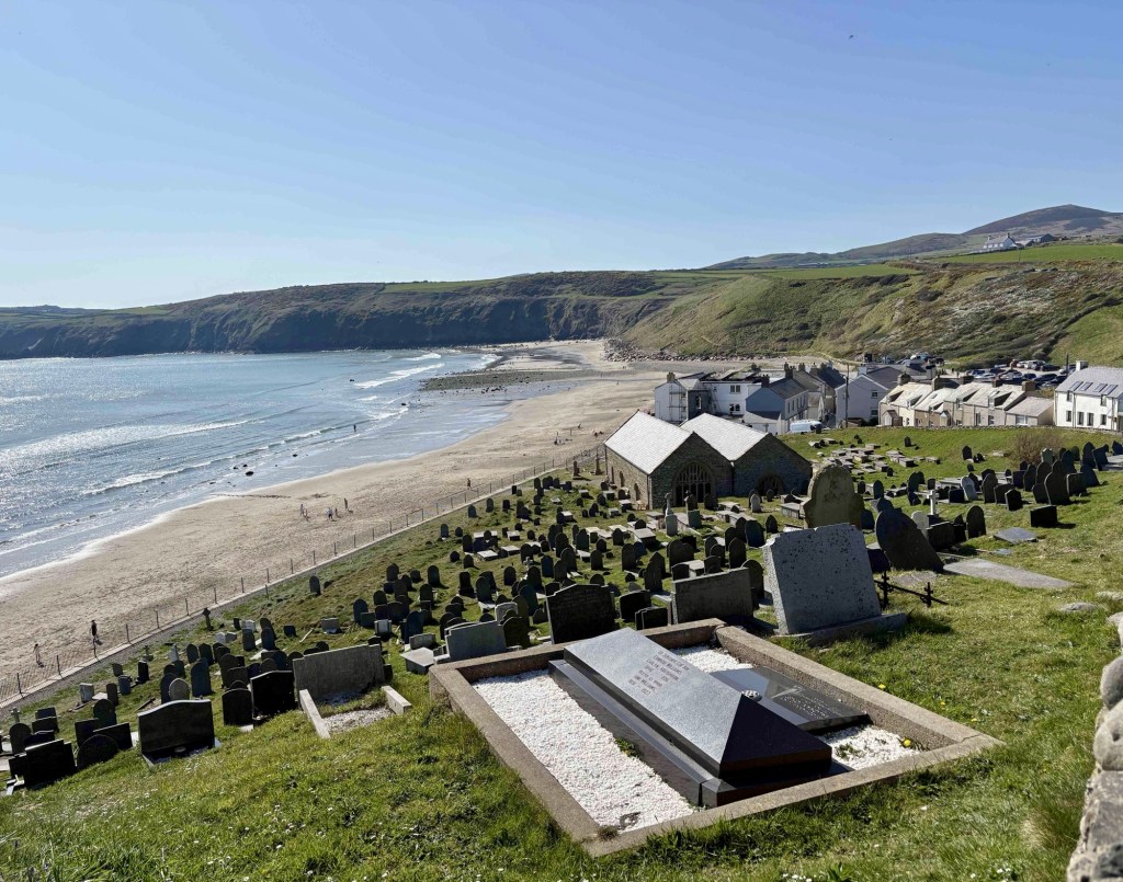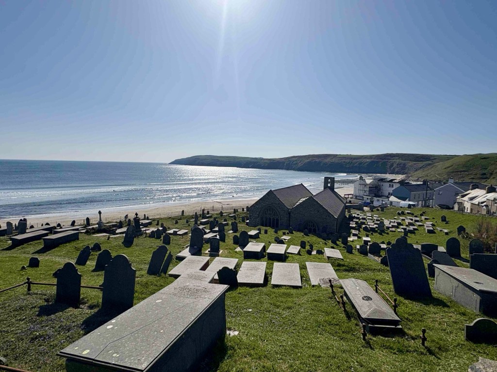 Towards the bottom is a lovely church and graveyard overlooking the sea and beach.