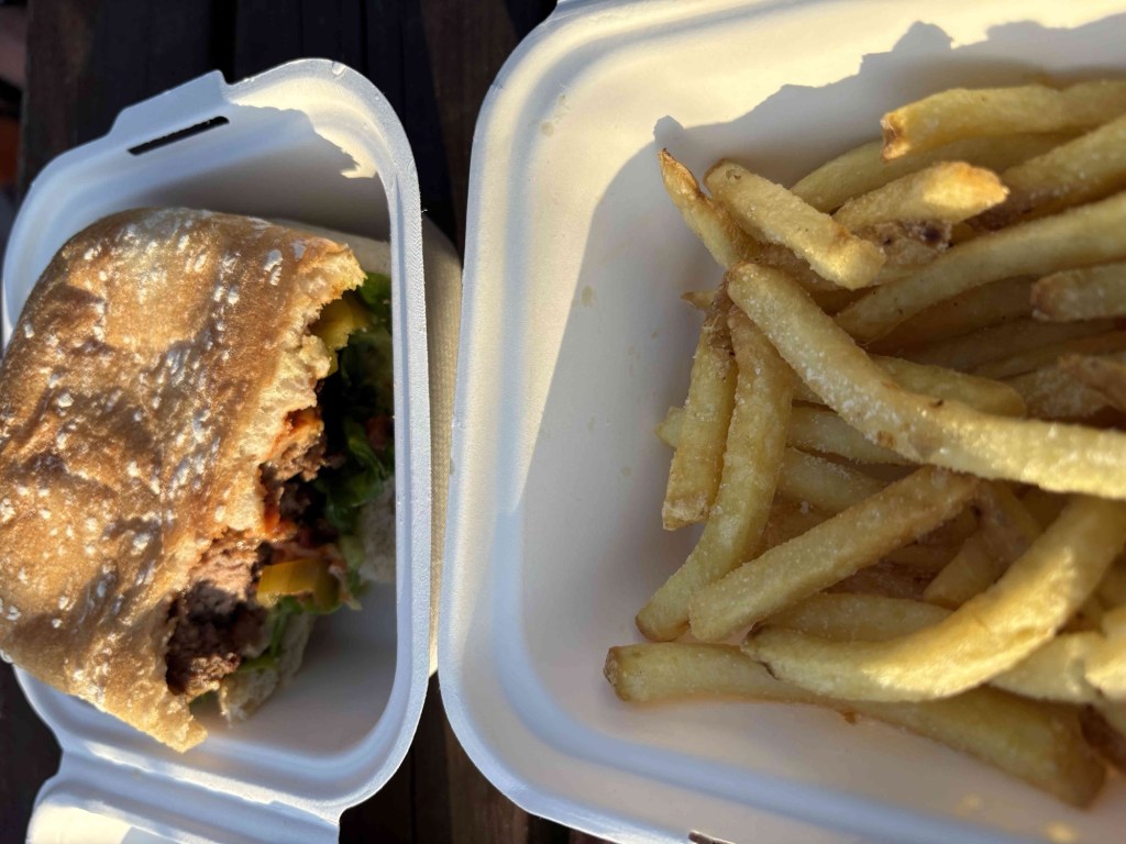 A wander down to the harbour whilst considering where to eat and eventually we decide to get burgers at the Mañana Mexican restaurant takeaway, sitting outside in the sunshine. They are delicious.