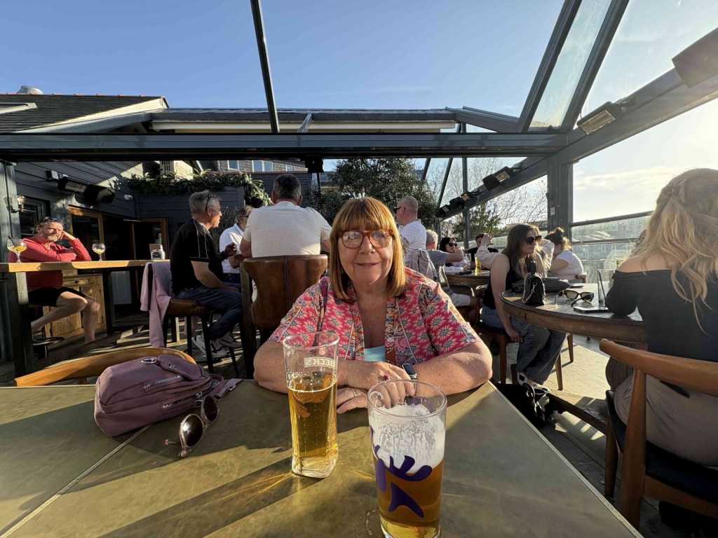 We stop for a drink in the conservatory of a pub called Zinc overlooking the river Soch and then visit the Vaynol pub and end up watching The Masters golf.