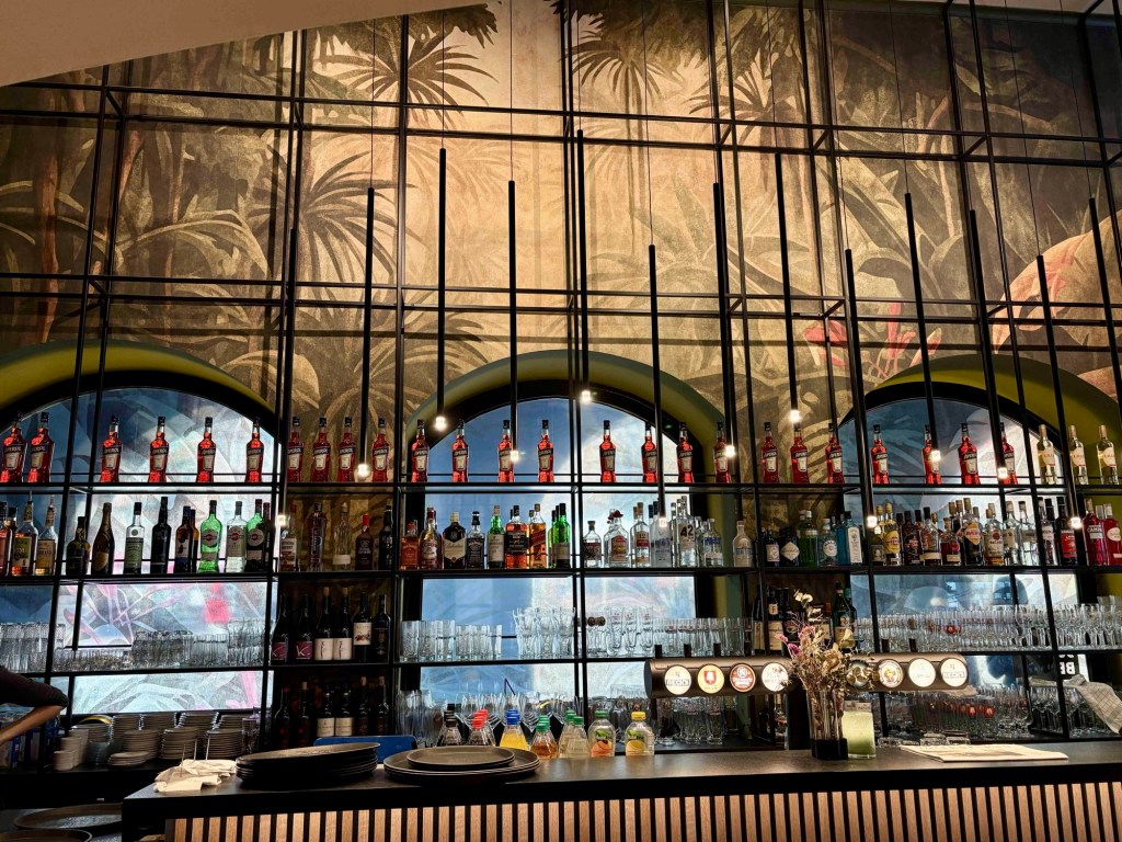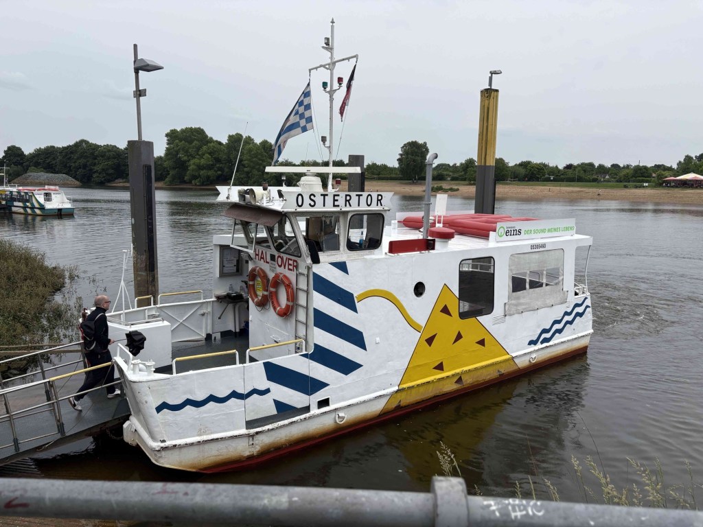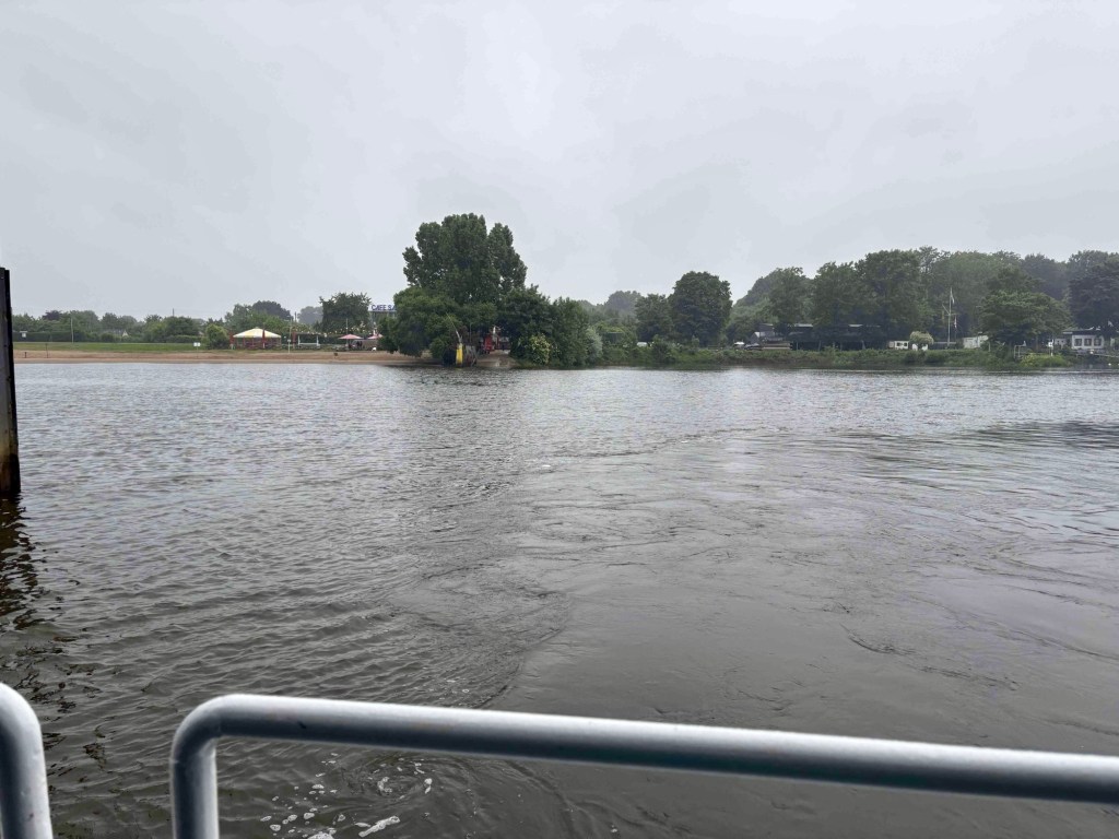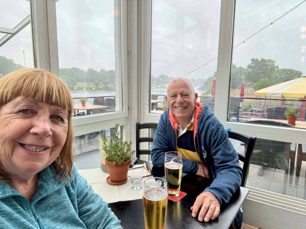 There’s still lots to see so we decide to stay another day here and come back tomorrow. We wander back to the ferry in the rain which we have to ourselves and then stop on our side of the river for a beer in The Sands. It’s set in a huge conservatory overlooking the Weser with its own beach.
