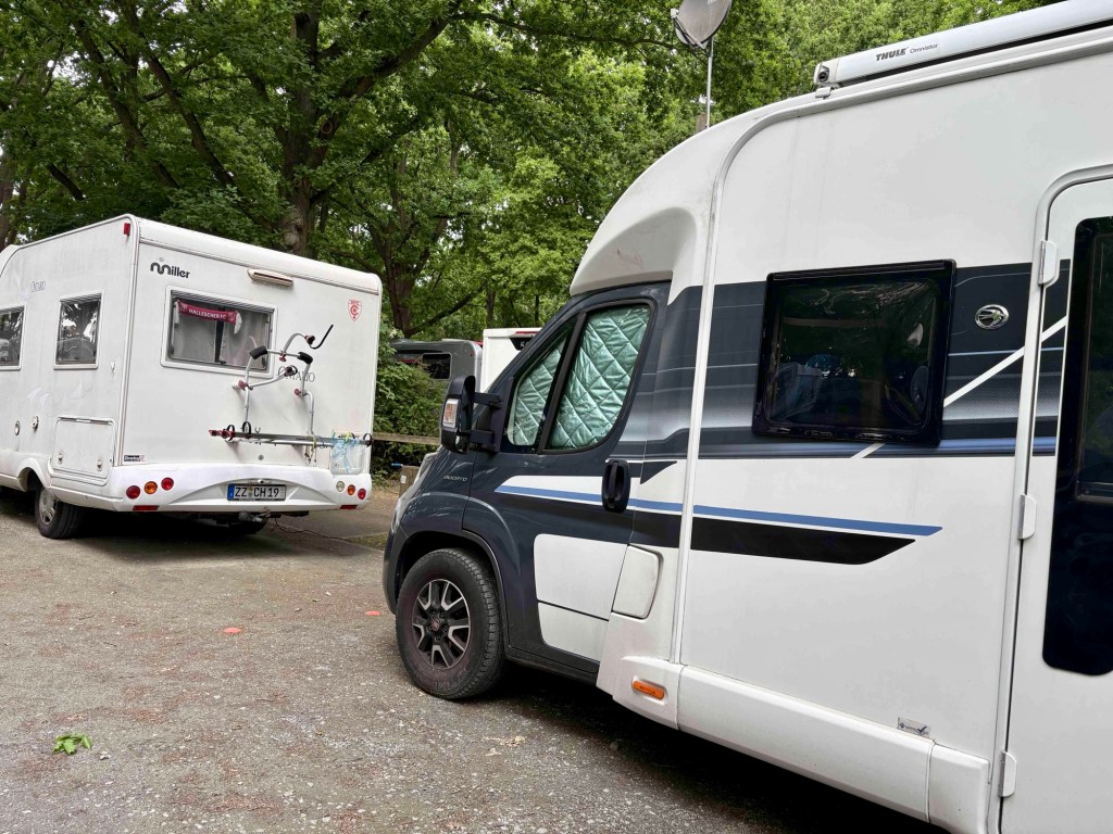 Today is a public holiday in Germany, Ascension Thursday. We’ve decided to slow our pace a little and hopefully stop at Bremen today which is an hour away. We’ve found a campsite in the centre of the city but it gets busy and the park4night app says ring when an hour away which I do at 9:30am. Success. There’s availability so we get on the road after tipping out our toilet cassette.