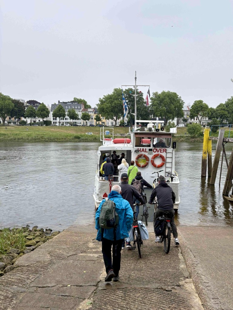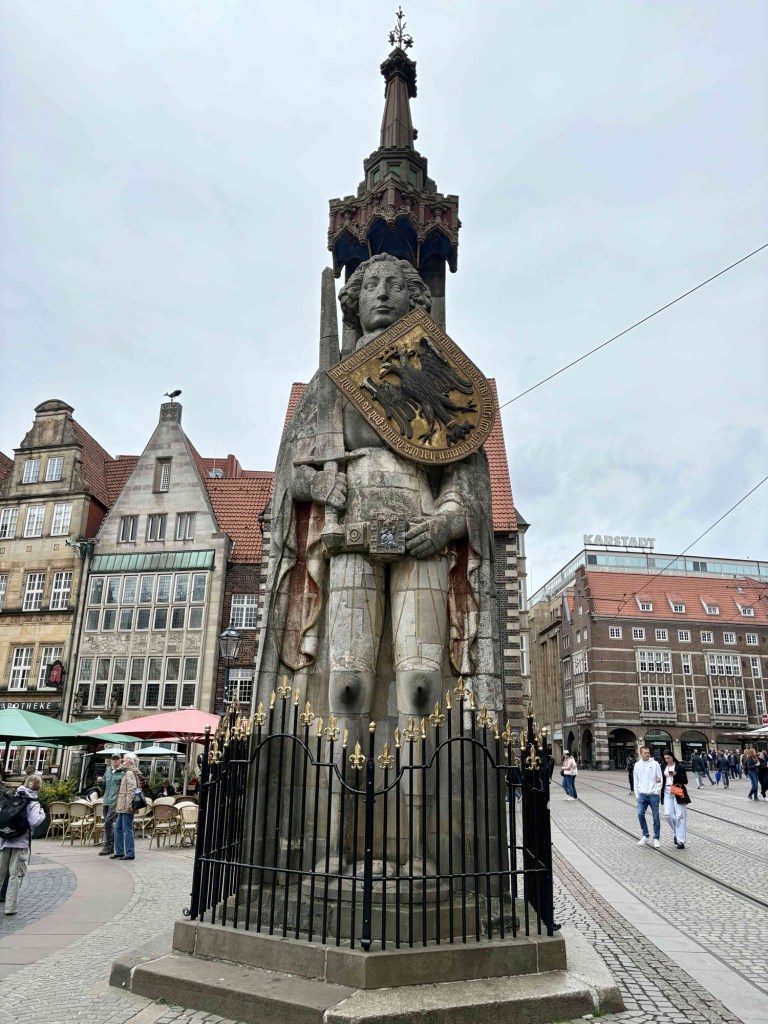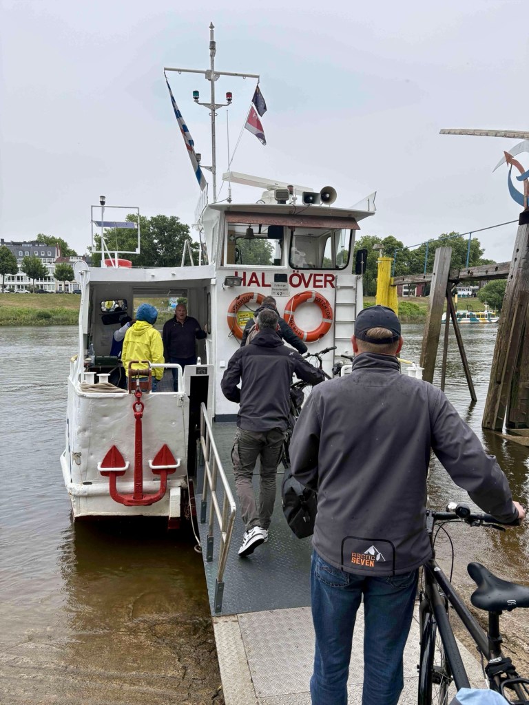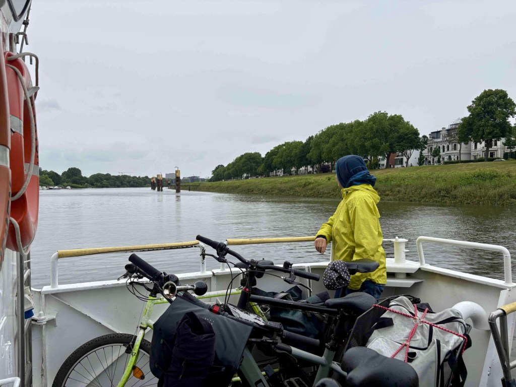 Around 3pm we wander into Bremen. Of course it’s spitting now. We catch the river ferry which is only 5 minutes walk from the campsite to cross the River Weser. It’s busy with loads of cyclists and an angry captain shouting at them as there’s too many bikes on the boat. Very entertaining.
