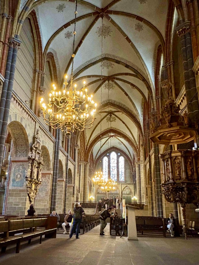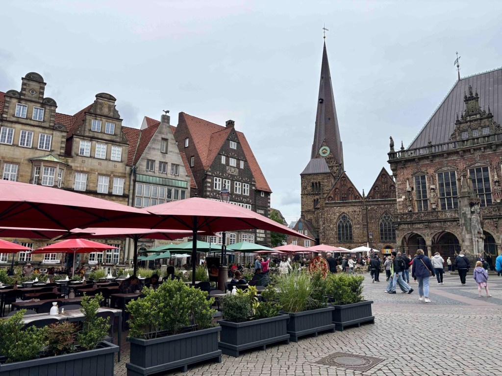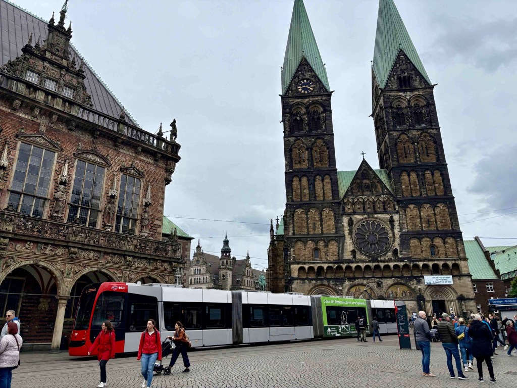 The market square, Marktplatz is impressive. Lined with Hanseatic buildings built in the early 15th century including the Town Hall, St Peter’s Cathedral and a large statue to Roland which represents freedom of trade. Trams run in front of the Town Hall.