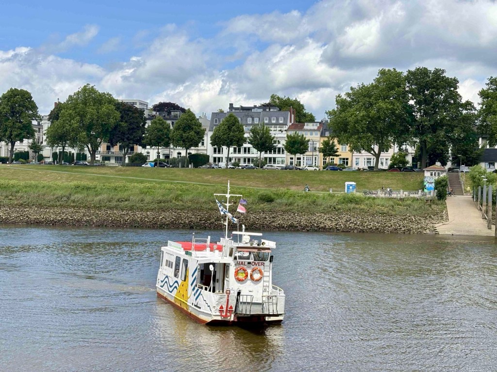 A much brighter start to the day today. French toast for breakfast and regular mivvying around for a welcome slow start. Early afternoon we take the ferry again across the Weser to walk into the city along the promenade.