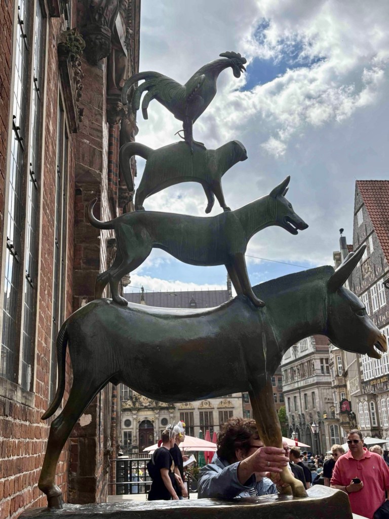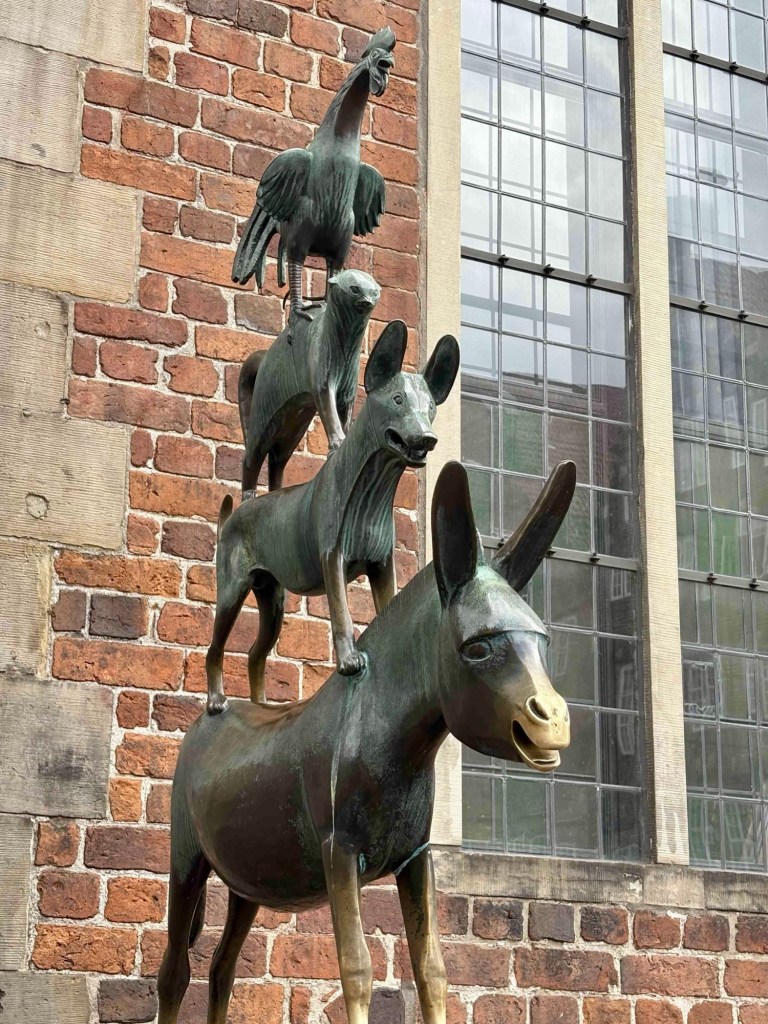 Next stop is the Marktplatz again for photos of the famous bronze sculpture of the “town musicians”.