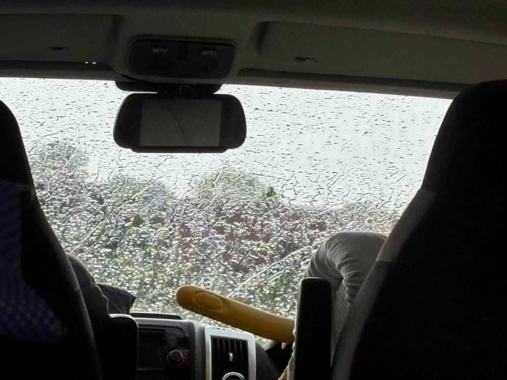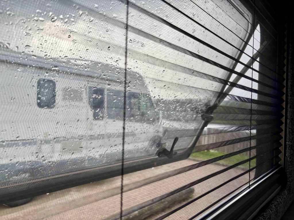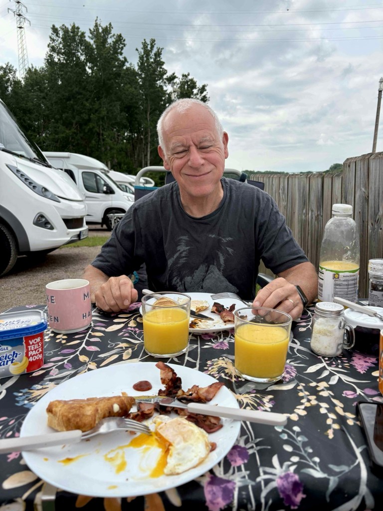 We wake to rain and it continues like that on and off. We manage to sit outside for a while with a tasty brunch but head back in again at the sound of thunder and then it really tips it down.