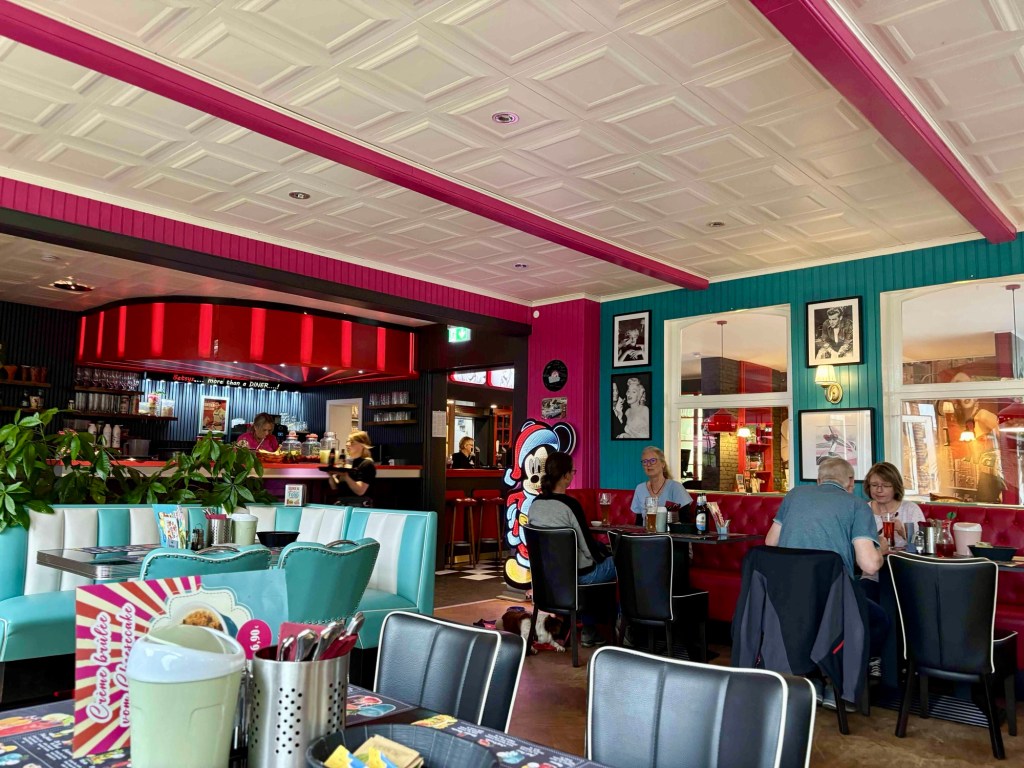 Around 5pm we head out and take the ferry across the canal for a meal at Betty’s cafe. Burgers all round and a beer.