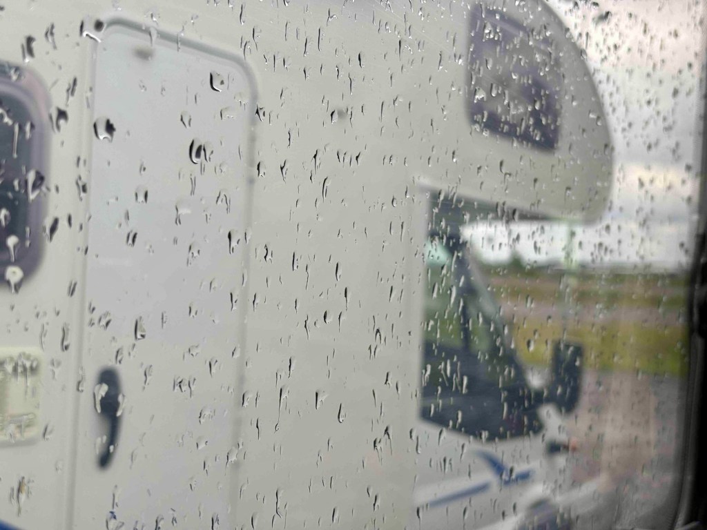 It’s raining so we have something to eat and then wait for it to pass.