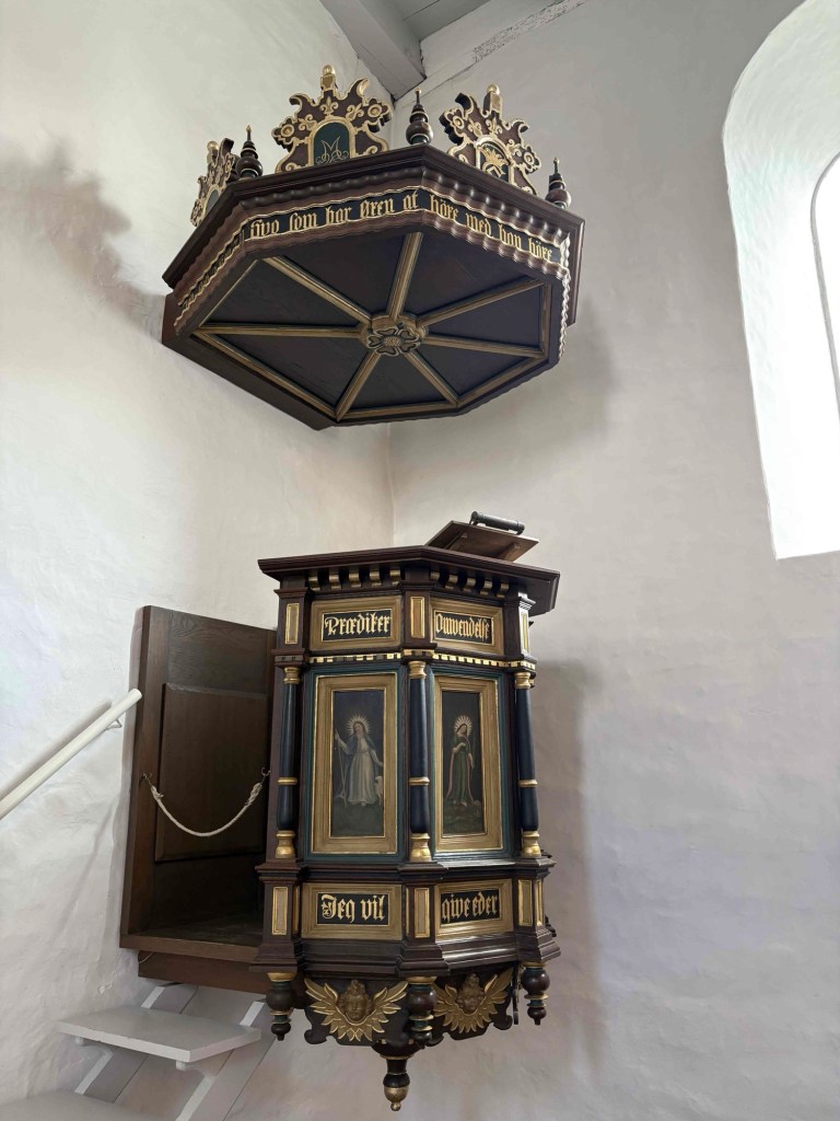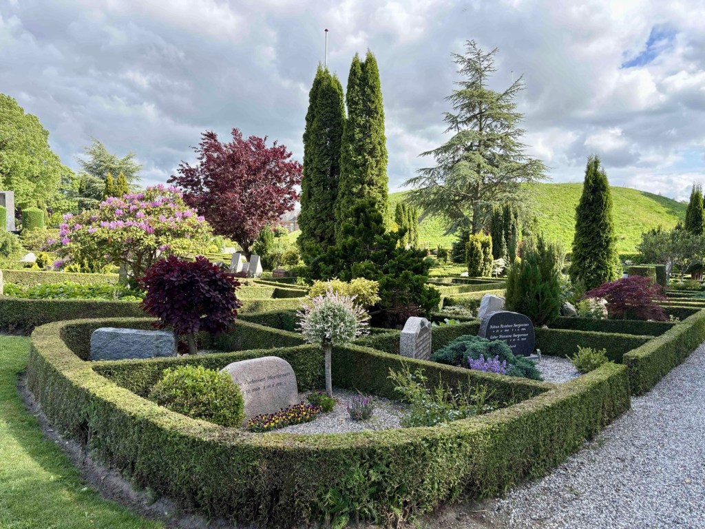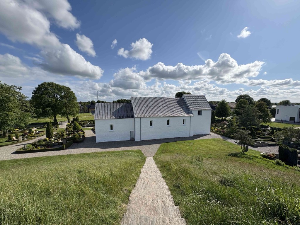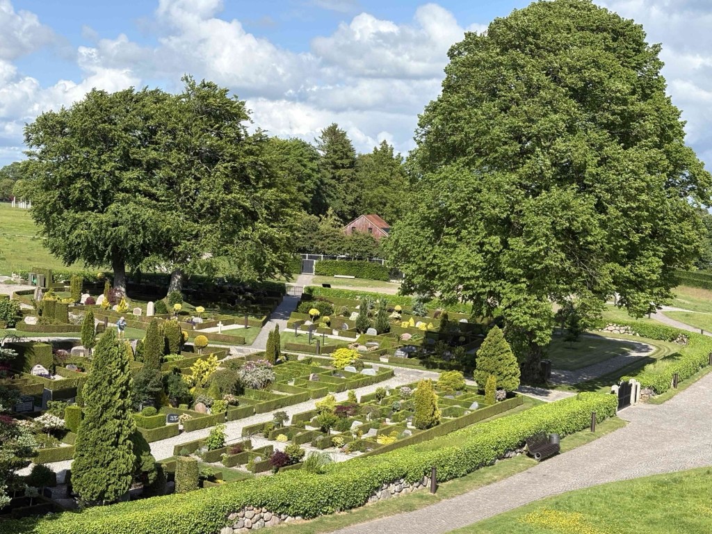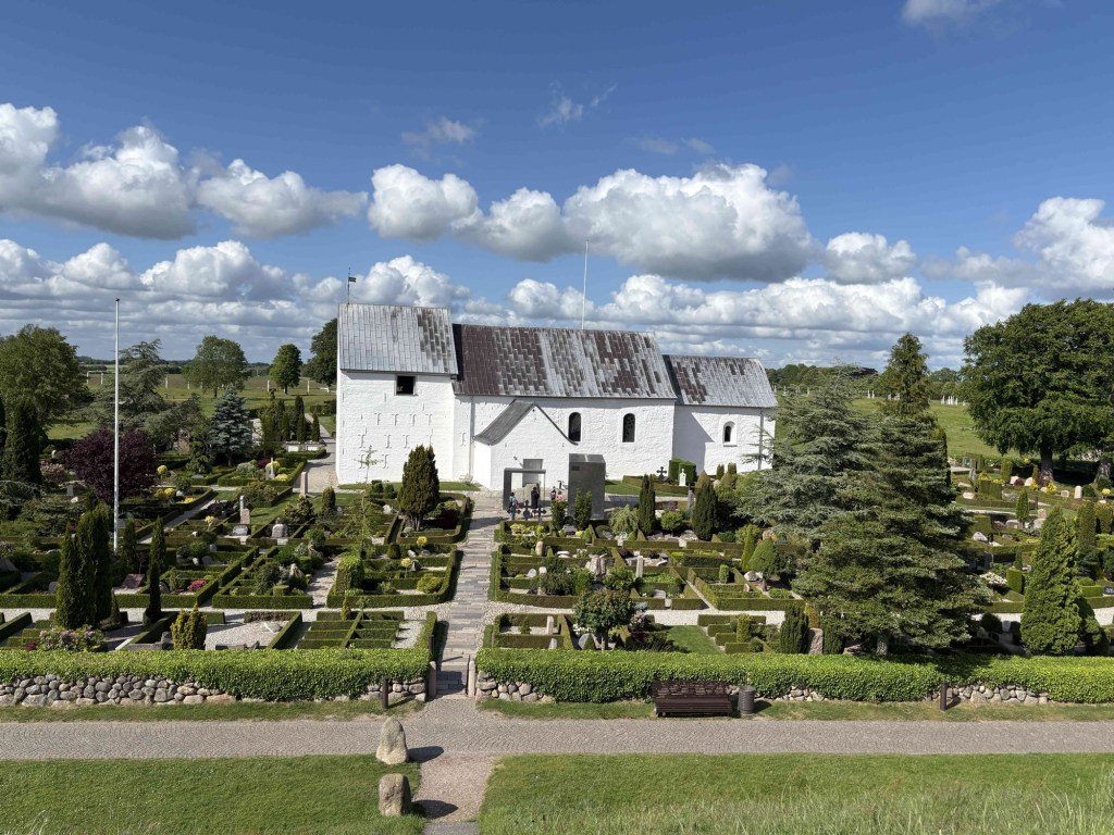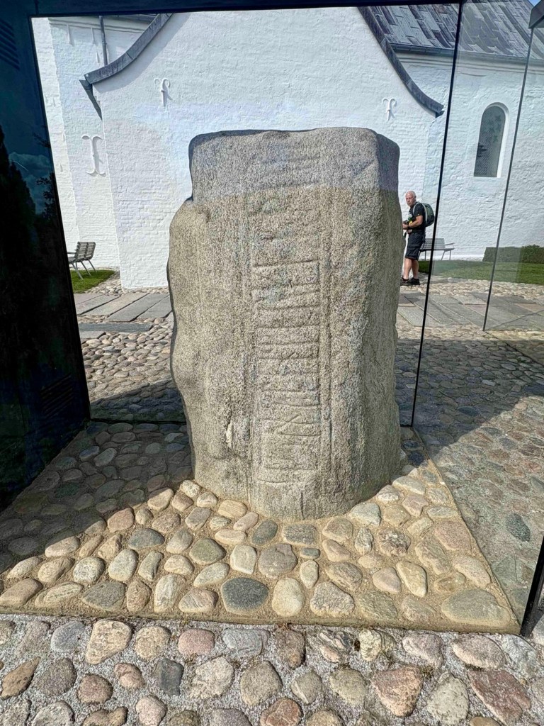 Jelling Kirke next door with its two rune stones outside the church door is a lovely whitewashed building surrounded by the most beautiful graveyard. The larger of the two stones has runes on it that appear on Danish passports and is considered Denmarks birth certificate.