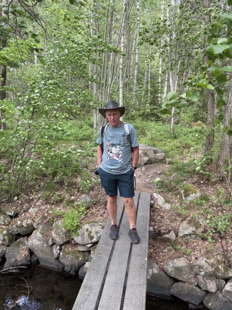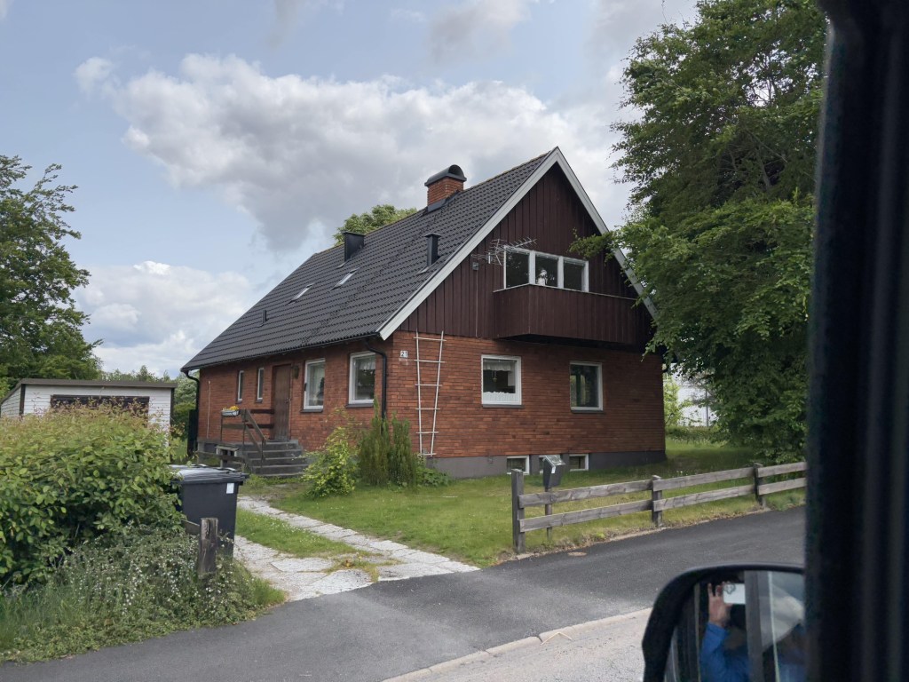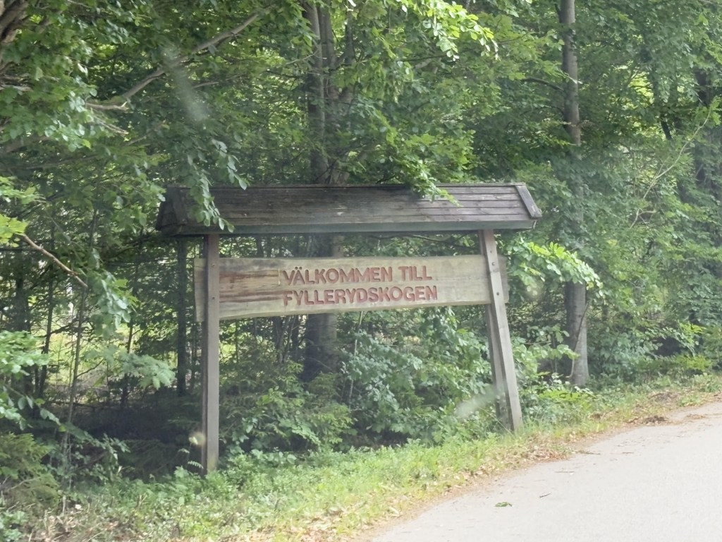 We drive through Sandsbro which is an attractive village with a golf course and down an ever narrowing forest road. Unluckily we meet a large van and we struggle to pass each other. Cars queue behind us but he kindly reverses so easily sorted.