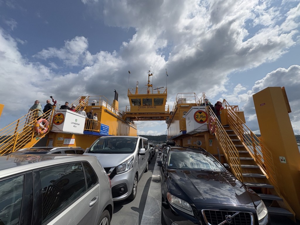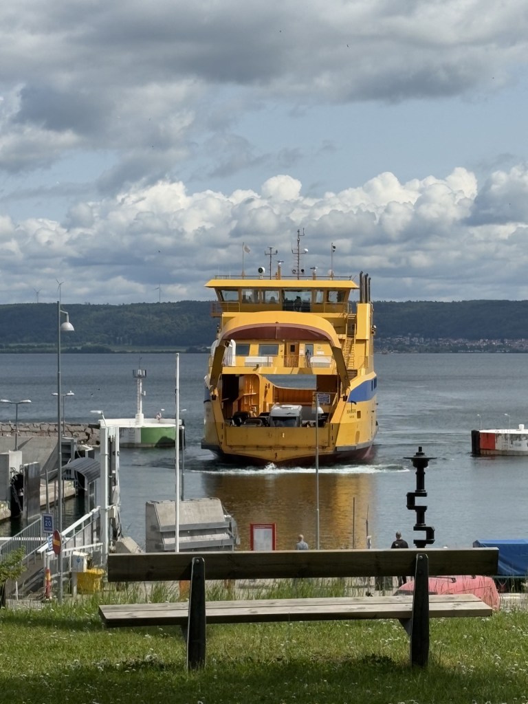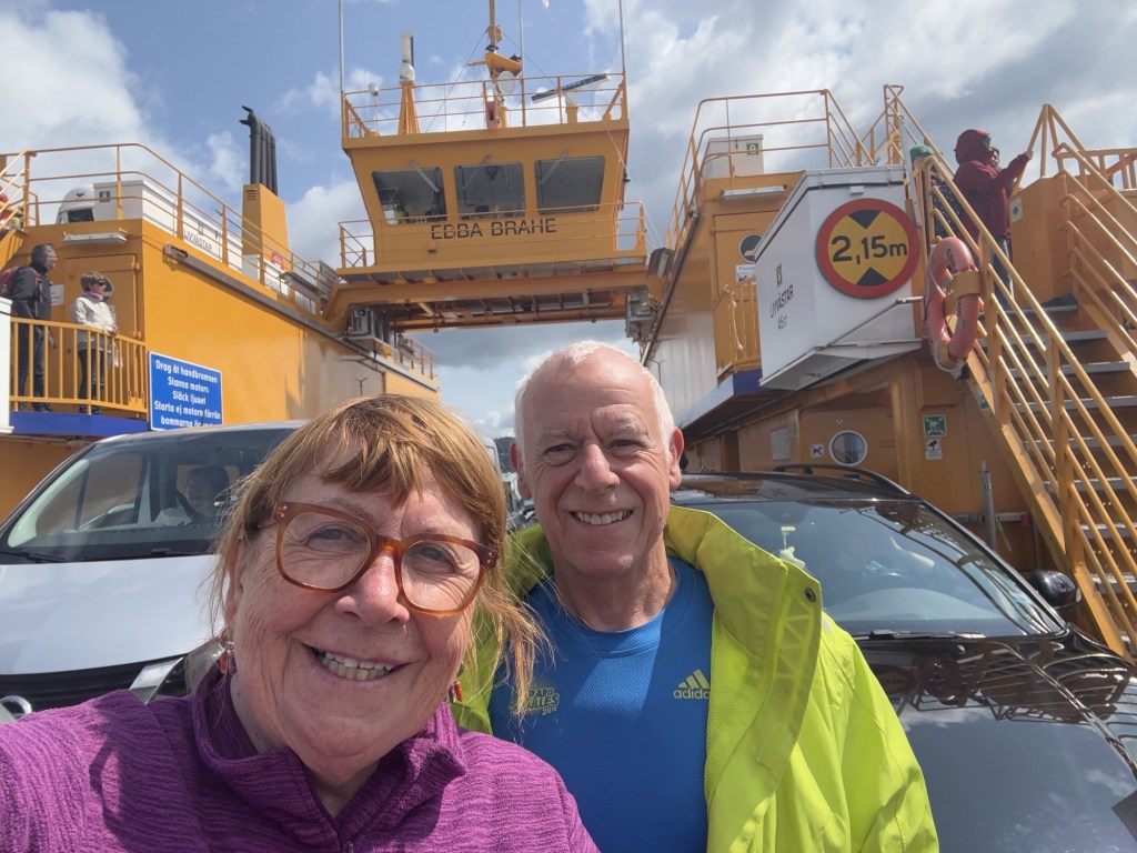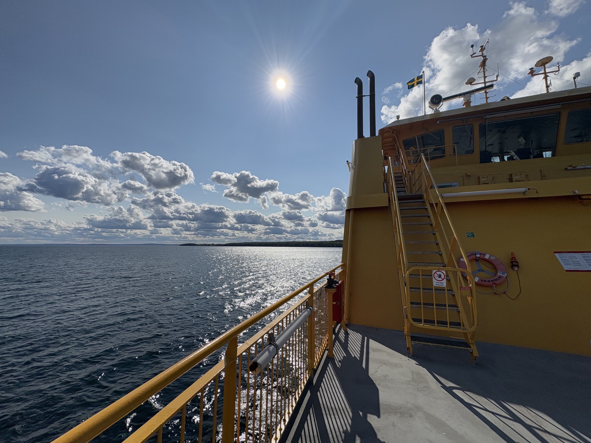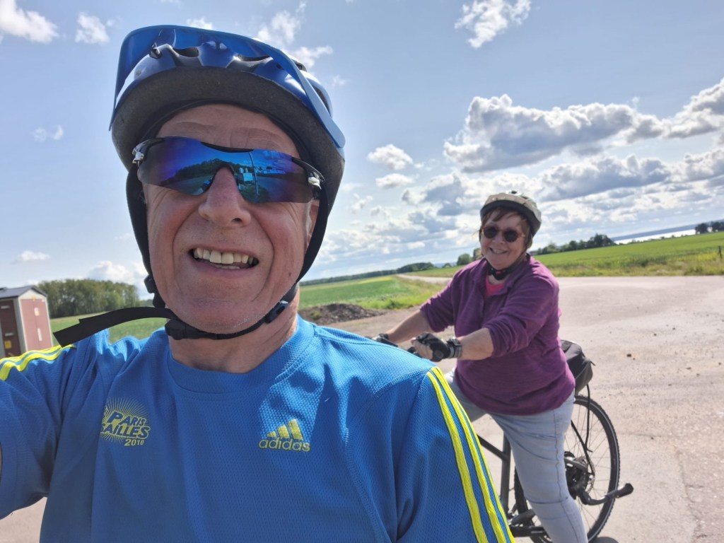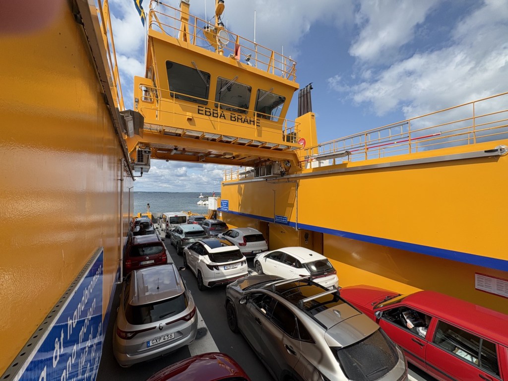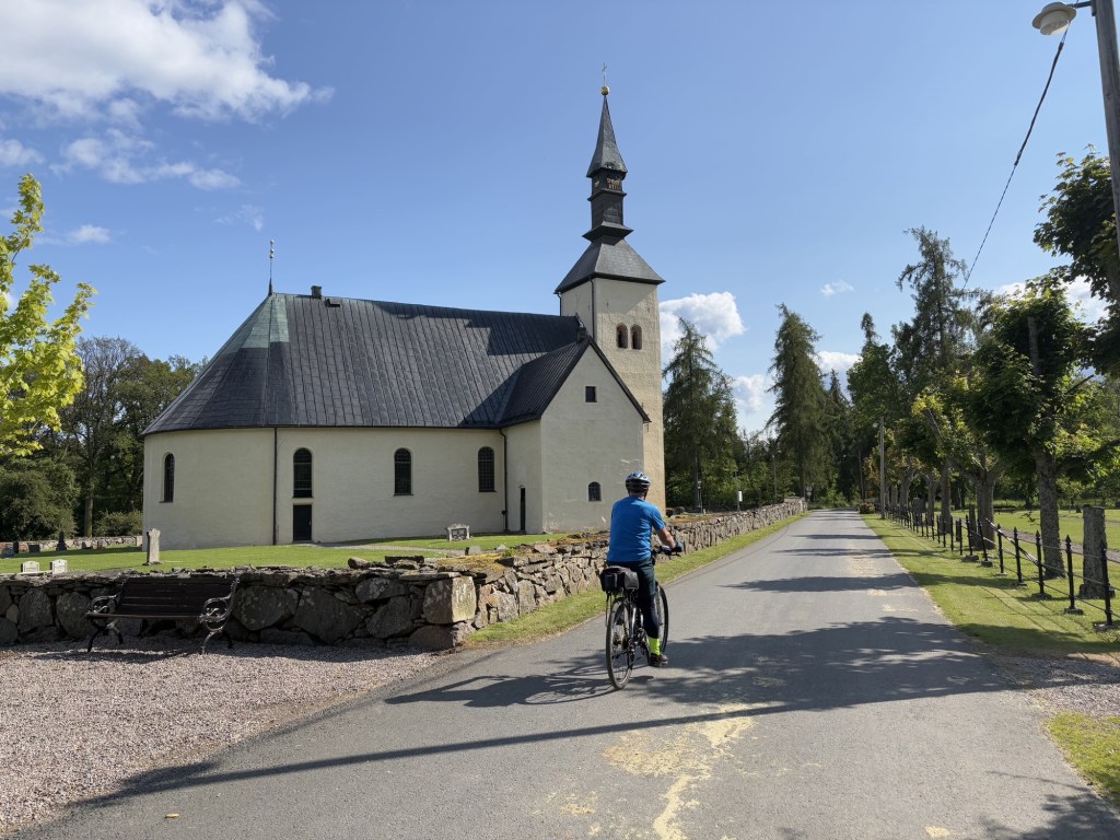 We take the ferry across Lake Vättern to Visingsö island. It’s a thirty minute crossing and it’s busy with cars and other cyclists. I have a problem with my bike as soon as we land. There’s an error message and no power. Mini crisis… With a bit of you tubing by me and tinkering and cleaning by T he managed to get it going. Google thinks the speed sensor on the crank was dirty. Anyway success!