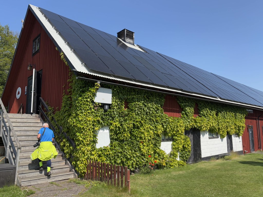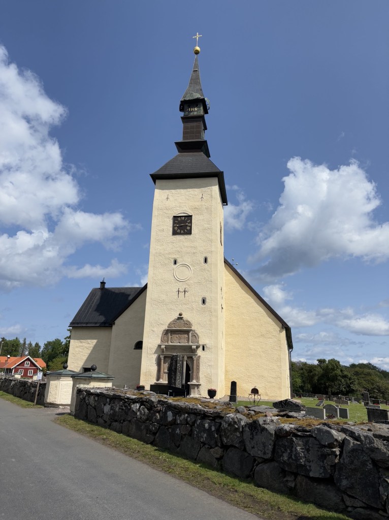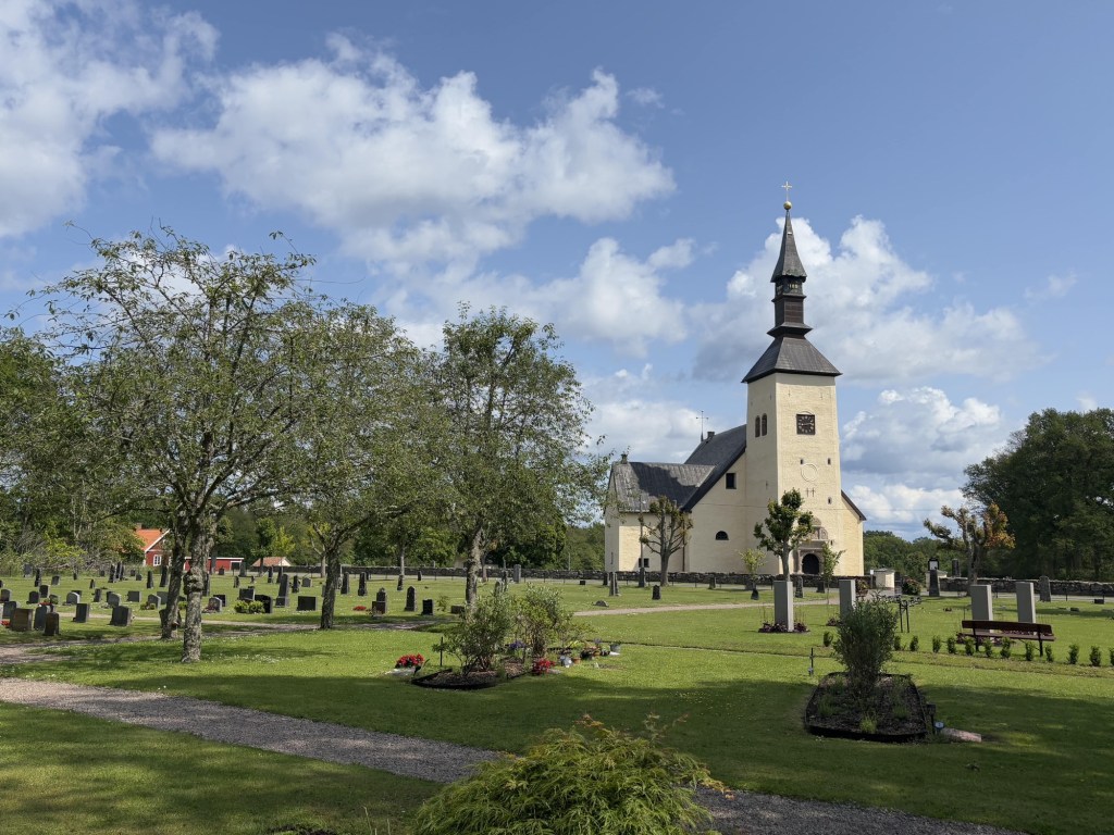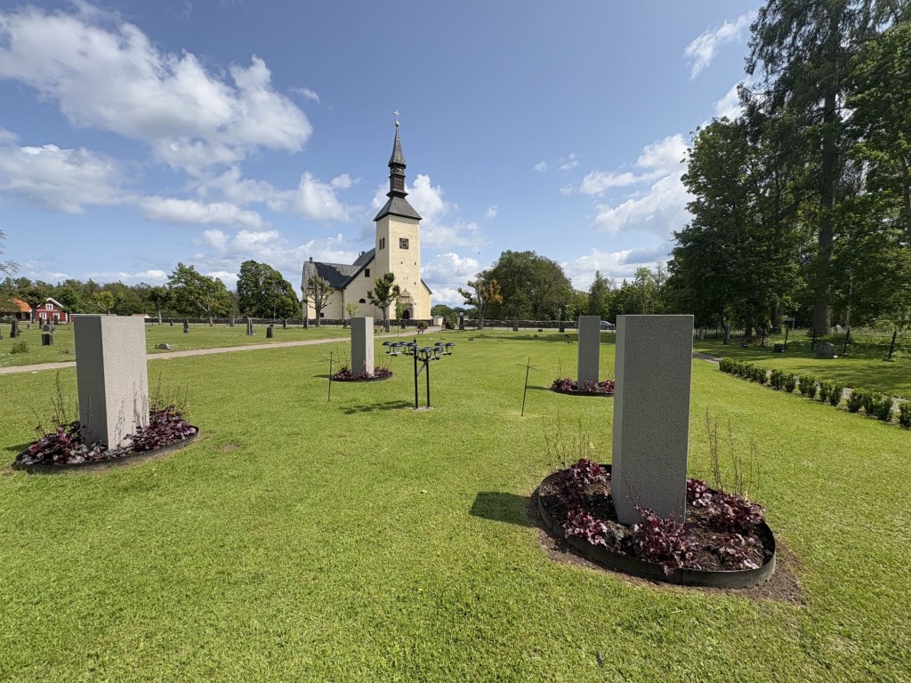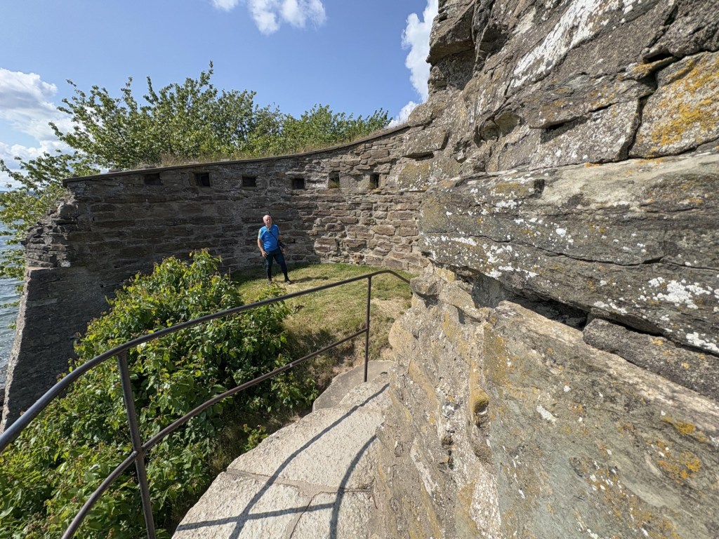 The route was a loop from the ferry to the southern end of the island. We visit Churches, enjoy our butties at Näs Castle built as a royal residence in the 12th century but now in ruins and stop for coffee and cake at a cafe. There are crops planted everywhere right up to the edge of gardens. The houses and gardens are beautiful and we see lots of robot lawnmowers working away. It’s a lovely island.