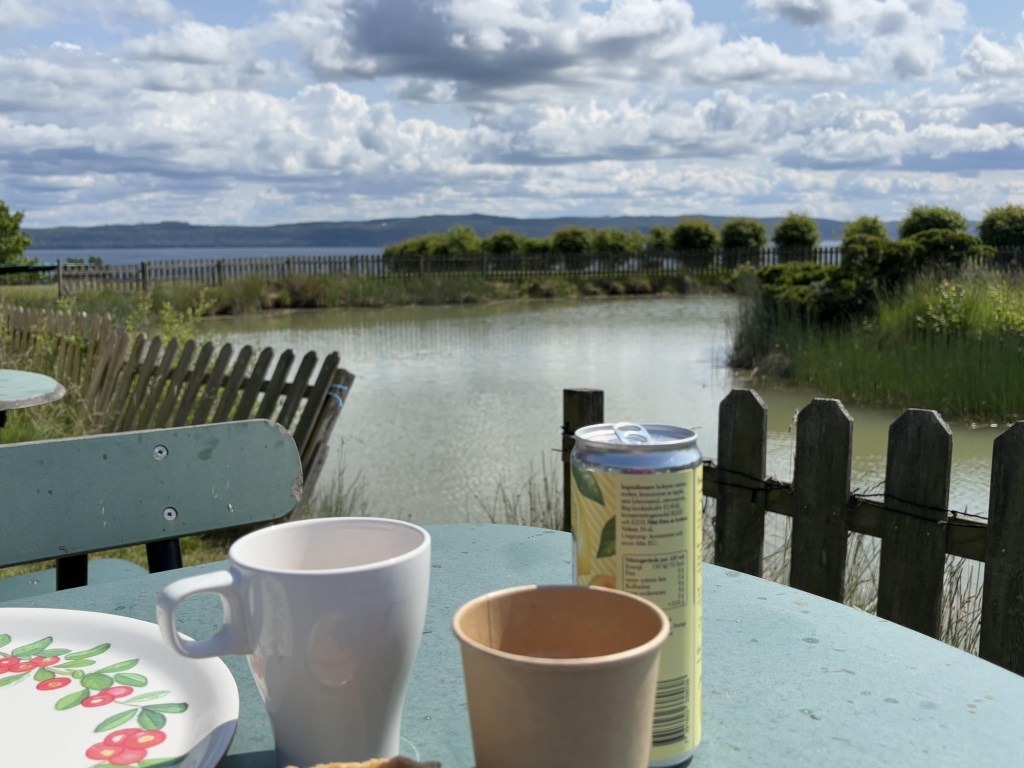Literally finish our tour and cycle straight back on the ferry as it’s about to leave. It’s lovely to sit outside the van in the sunshine with a cold beer and we get to eat our dinner outside too. More washing done and eventually back in the van to see more of GOT. The weather forecast is good so we’ve decided to stay another day to give us a chance to walk into Gränna and enjoy the good weather.
