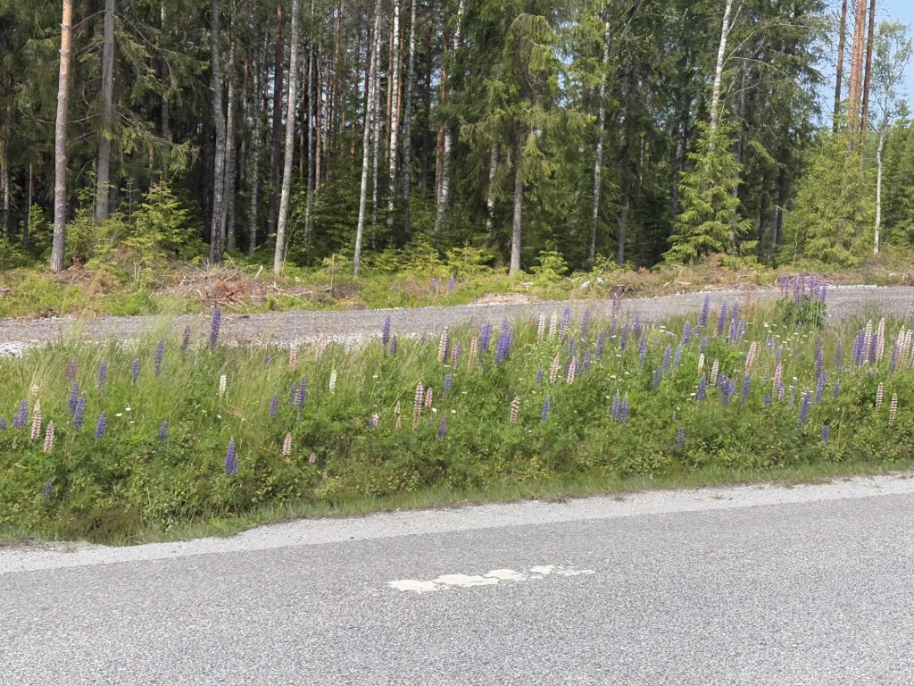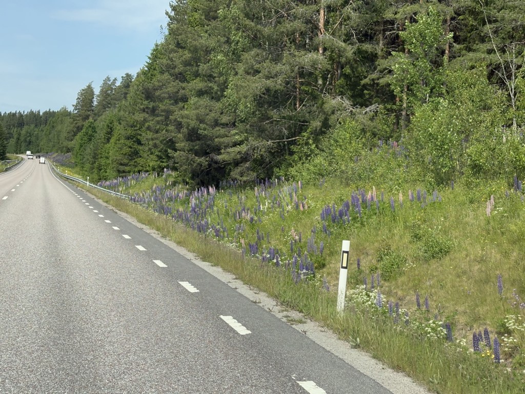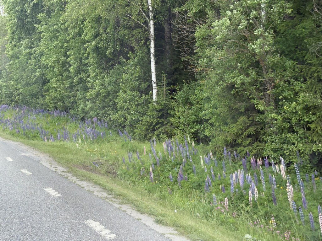 That’s Sweden for us so far. Forest, lakes, lupins, red and yellow wooden houses and empty roads. It’s all just so wonderfully green.