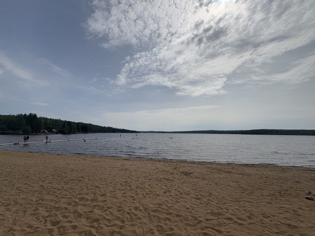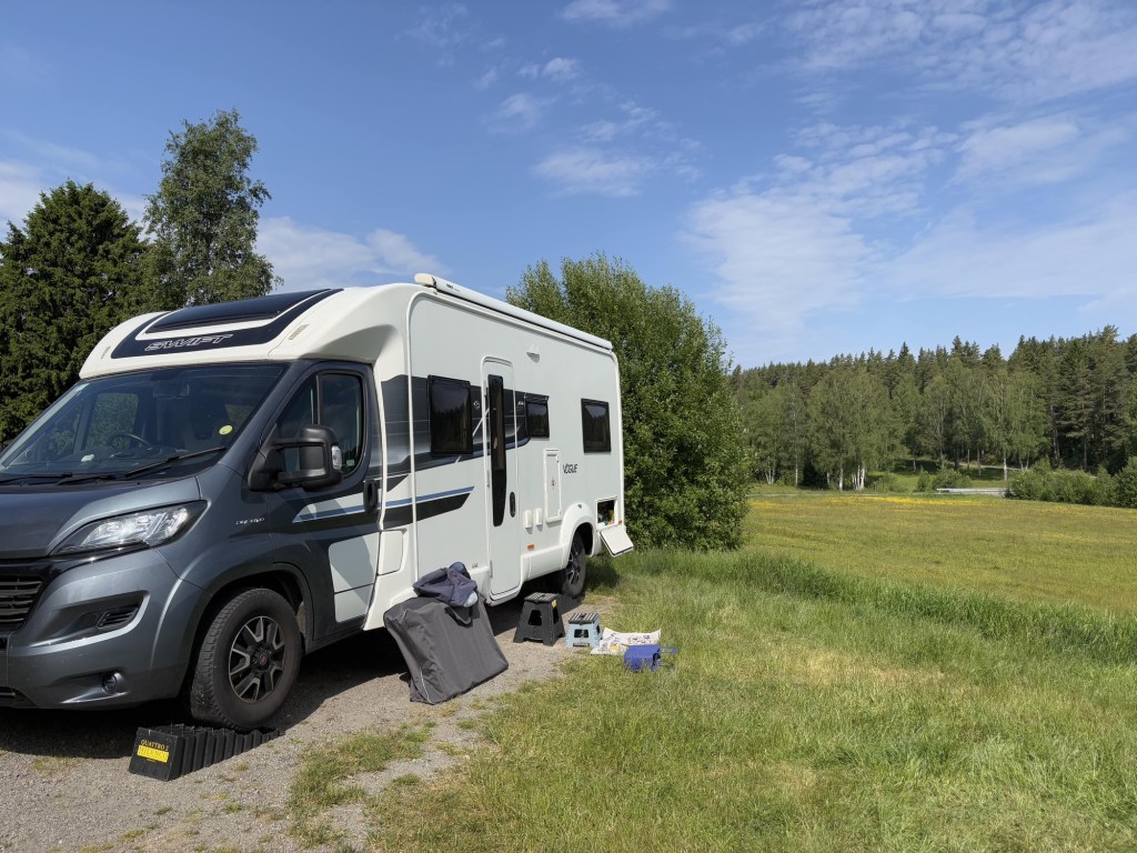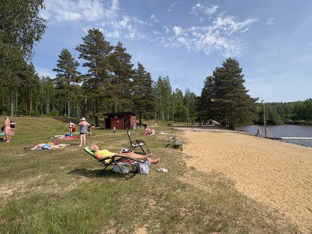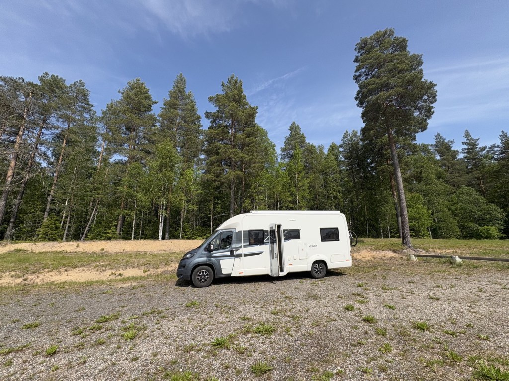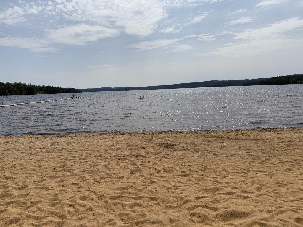 We are staying one night on a car park overlooking a beach and a lake called Norra Hörken. It’s Sunday so I was worried about getting a spot but the car park is huge.