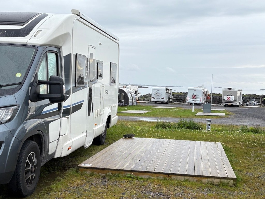 It’s a nice spot overlooking the ocean with a small marina. We get a good pitch overlooking the water and are excited by the free laundry facilities. It’s raining again of course so sitting outside isn’t an option. Three laundry wash and dry loads later and a bit of cleaning and we are set again. Chicken fried rice a la T for dinner and the end of Season one of Deadwind and then some of GOT Series five. Jon Snow is dead!!