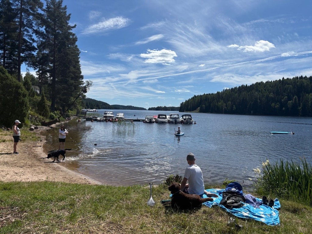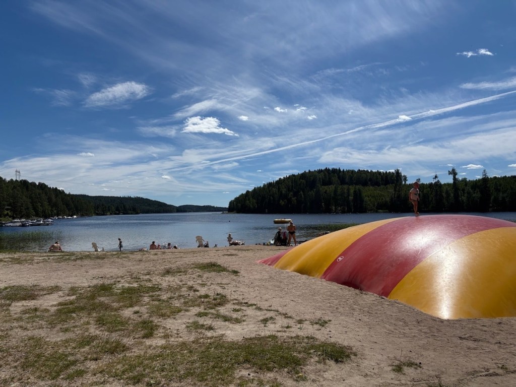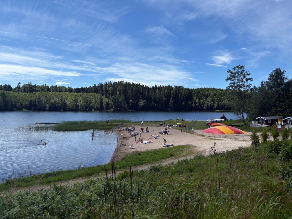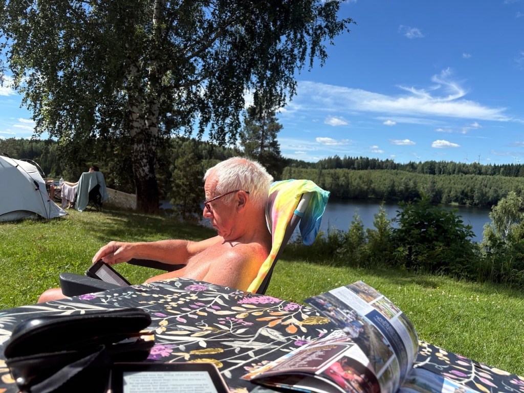 The wind has gone and the sun is out so we enjoy a day sitting outside and soaking up the rays. We’re a little more active and finally get around to wandering along the lake and to the beach. Lots of families here recreating.