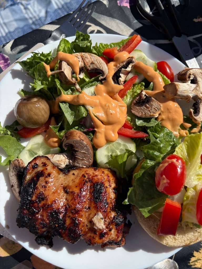 Late afternoon we break out the BBQ for the second time on this trip and enjoy honey and mustard chicken and burgers.