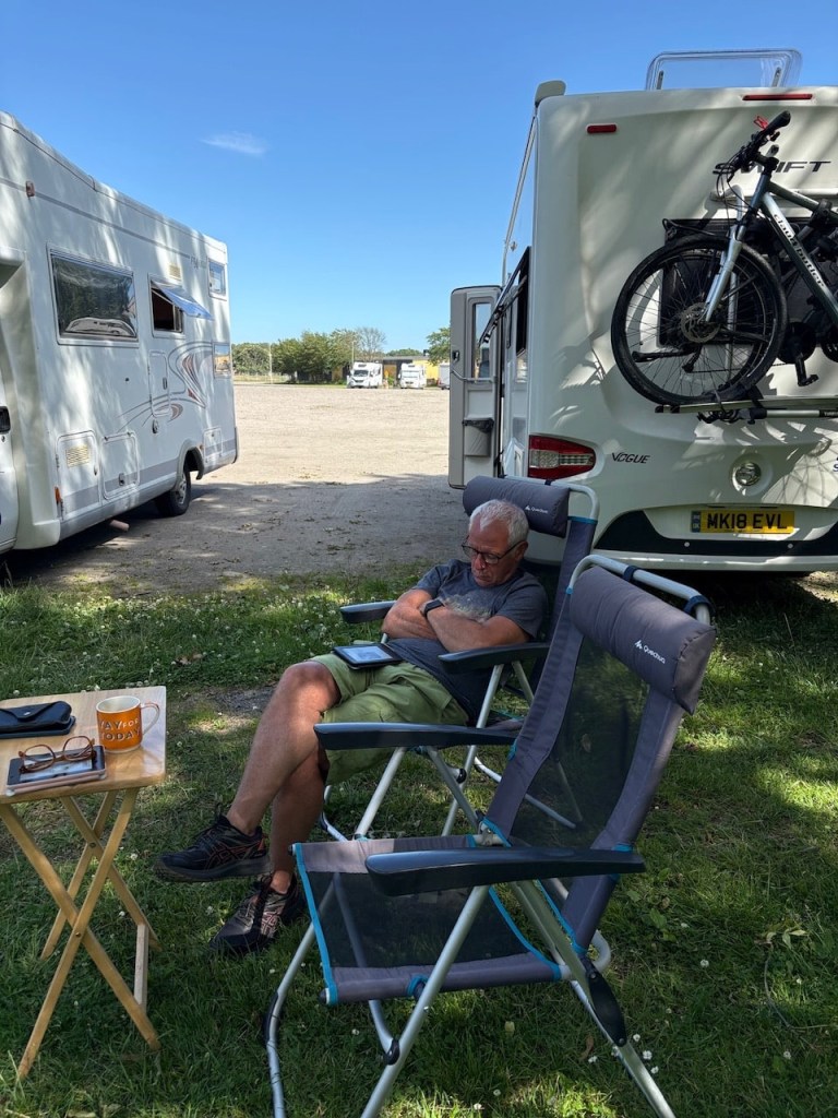 The park up is lovely overlooking the lake and a marina but lasts about fifteen minutes as we and a few other motorhomes are moved on very politely by a security guard who tells us that the motorhome parking is a small section of said car park and full.