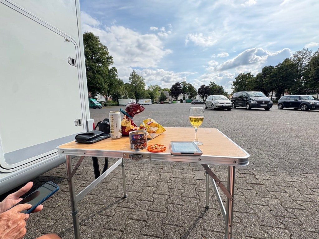 Arriving at lunchtime we park up in a car park with a designated motorhome area. There’s lots of vans here already but room for a few more.